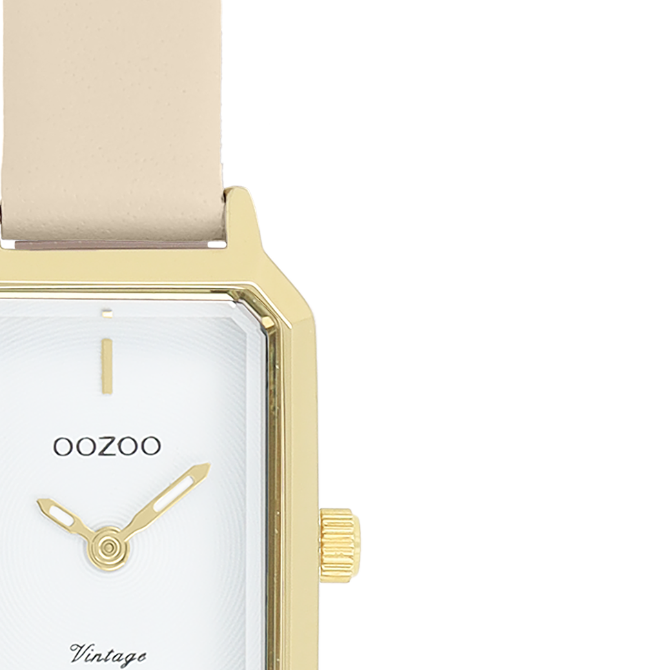 Gold coloured OOZOO watch with sand leather strap - C20450