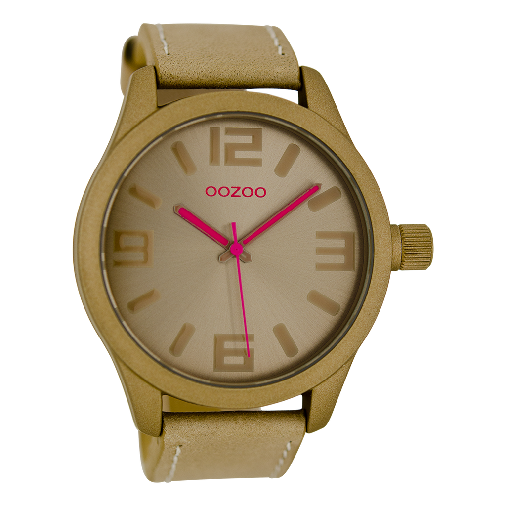 OOZOO Montre en taupe/couleur or avec bracelet en cuir en taupe - C11317