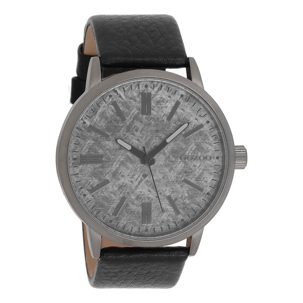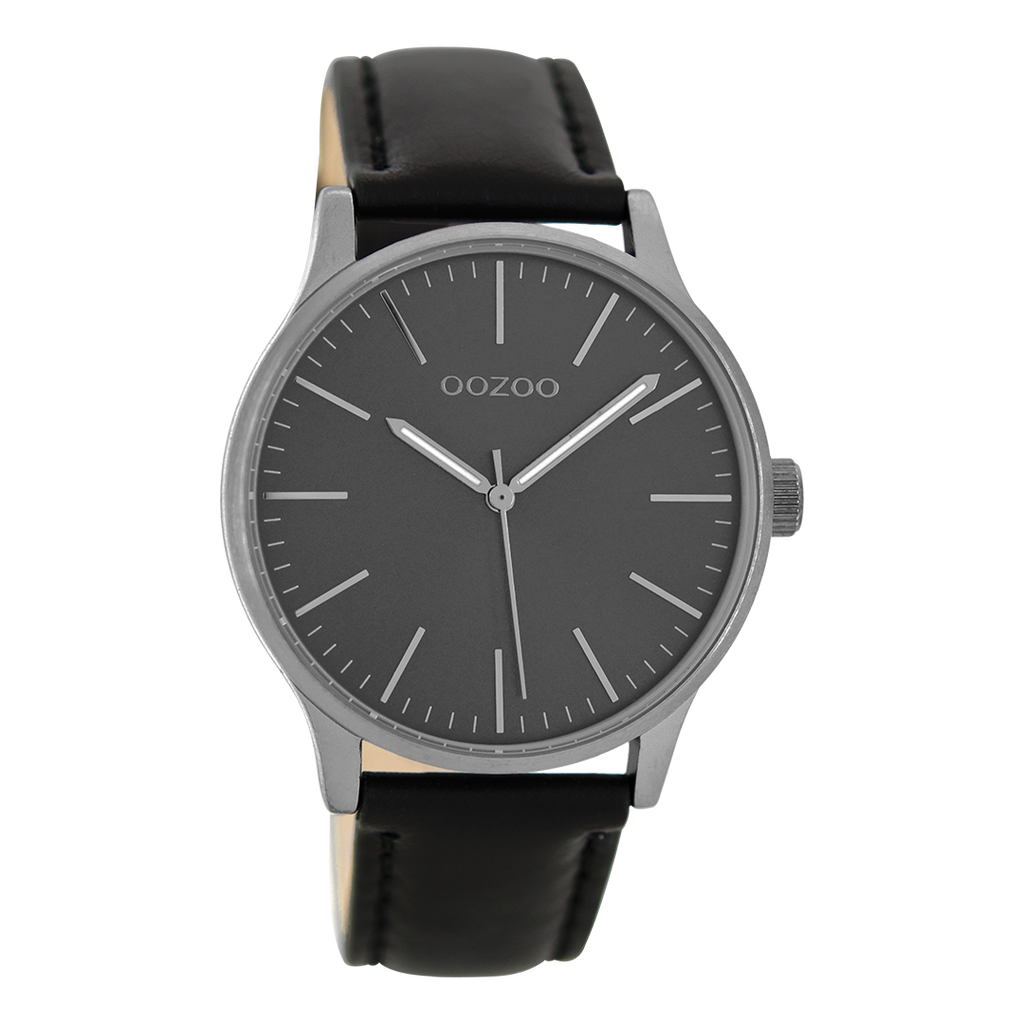 OOZOO Montre en titane avec bracelet en cuir en noir - C8544