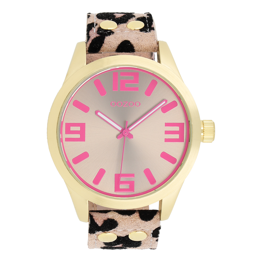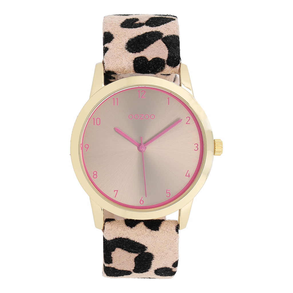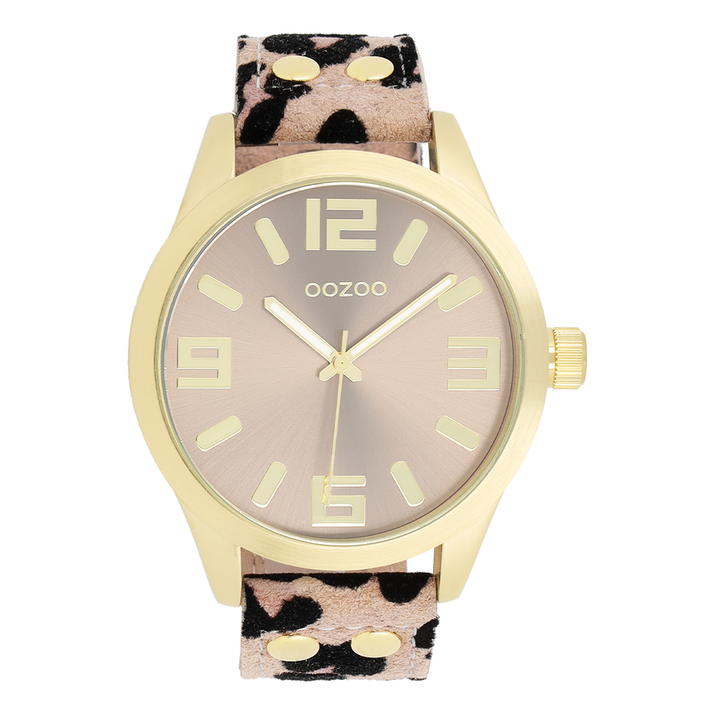 Gold coloured OOZOO watch with brown/black leather strap - C11626