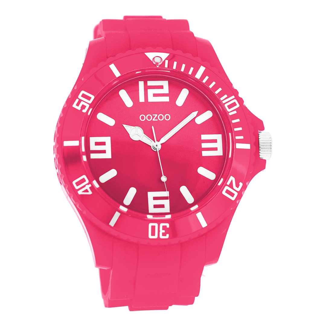OOZOO Montre en rose fluo avec bracelet en caoutchouc en rose fluo - C4285