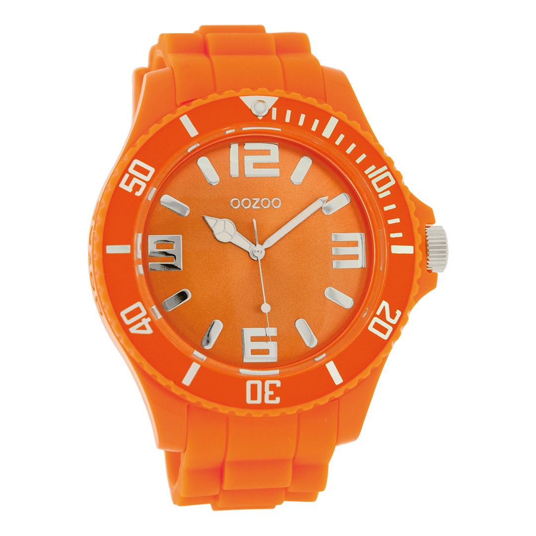 OOZOO Montre en couleur orange fluo avec bracelet en caoutchouc en couleur orange fluo - C4333