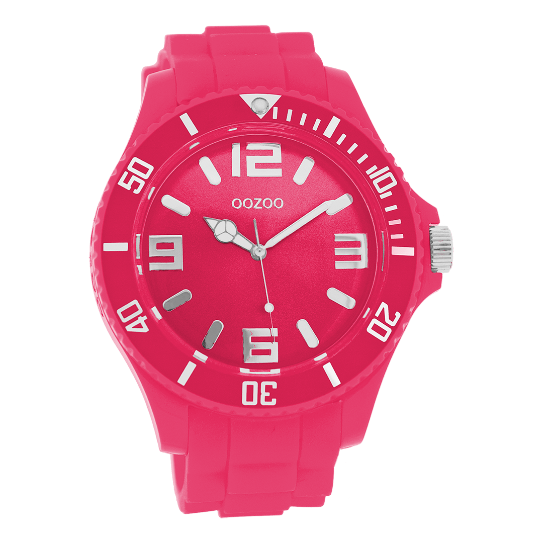 OOZOO Montre en rose fluo avec bracelet en caoutchouc en rose fluo - C4334