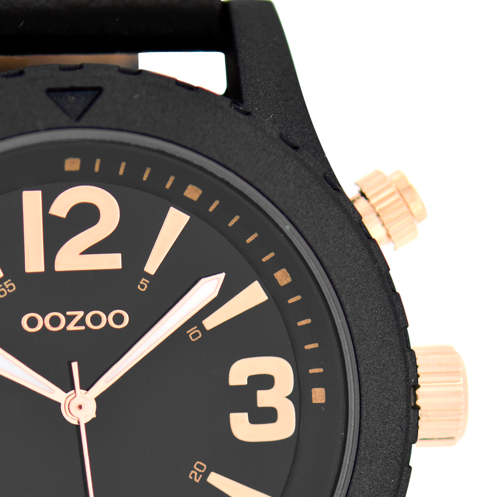 OOZOO Montre en noir avec bracelet en cuir en noir - C6114