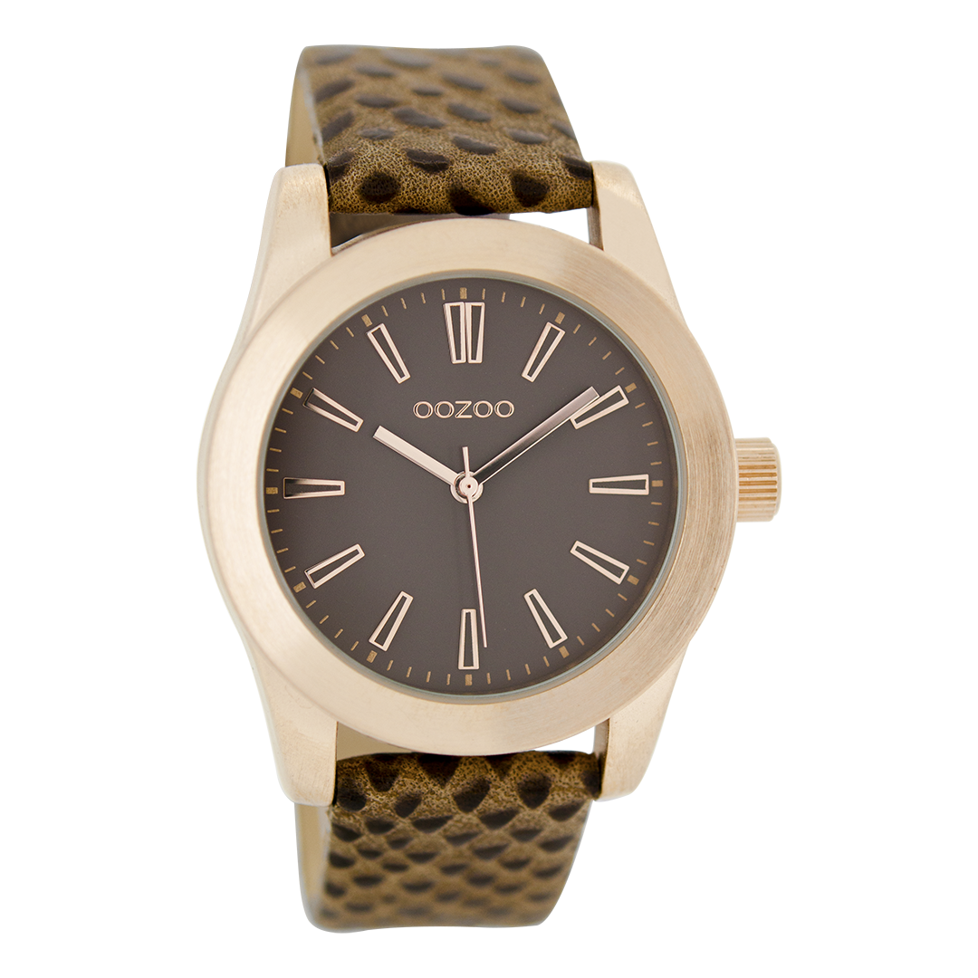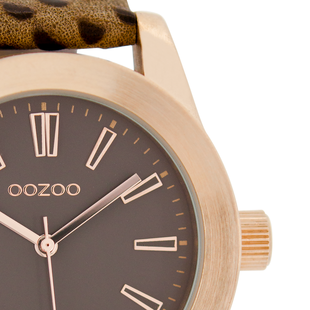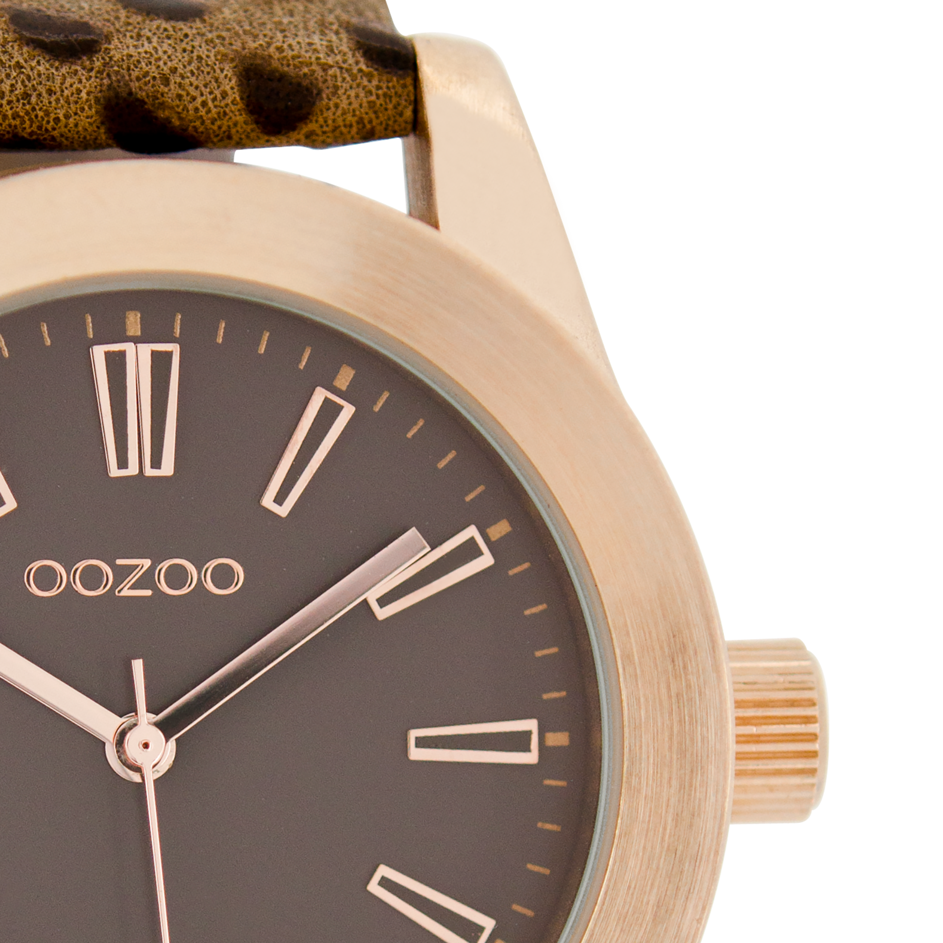 OOZOO Montre en couleur or rose avec bracelet en cuir en marron - C6862