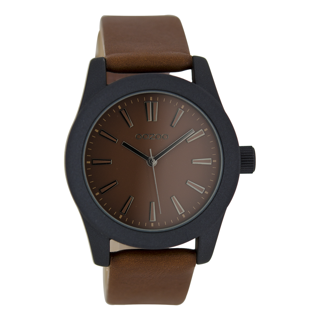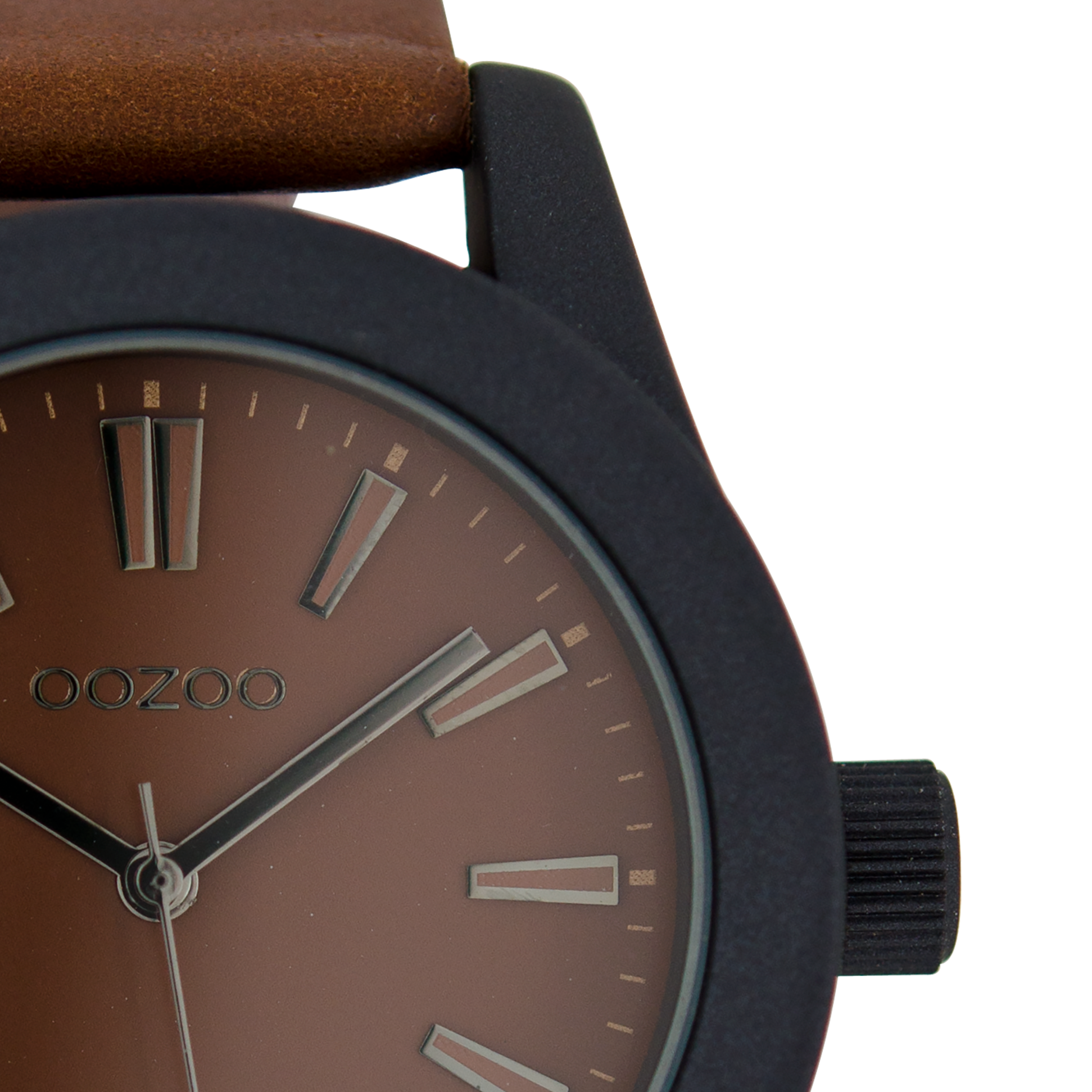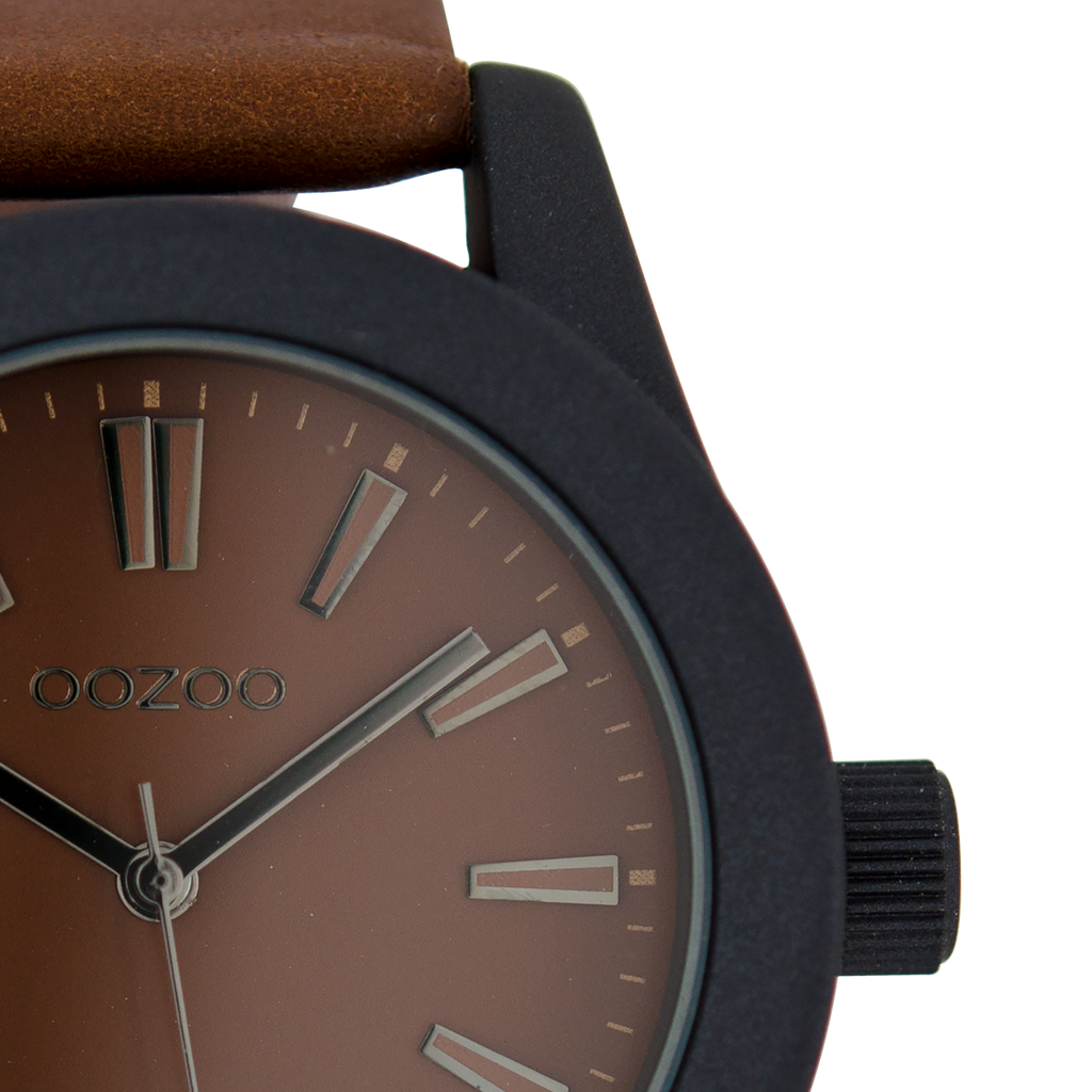 OOZOO Montre en noir avec bracelet en cuir en marron - C6863