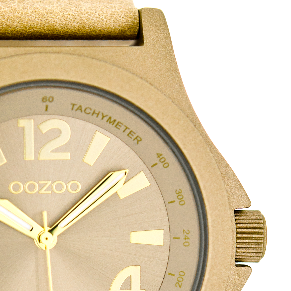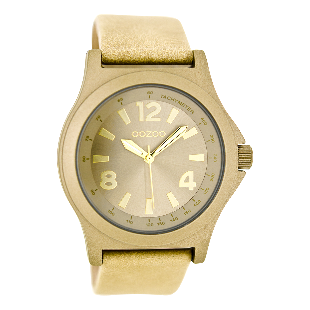 OOZOO Montre en couleur or avec bracelet en cuir en sable - C6875