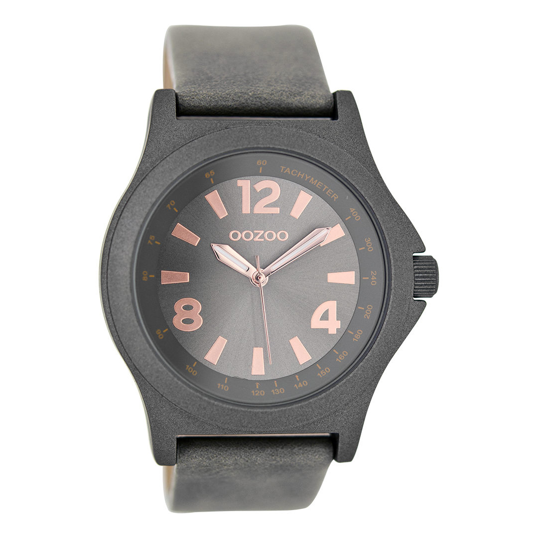 OOZOO Montre en gris avec bracelet en cuir en gris - C6877