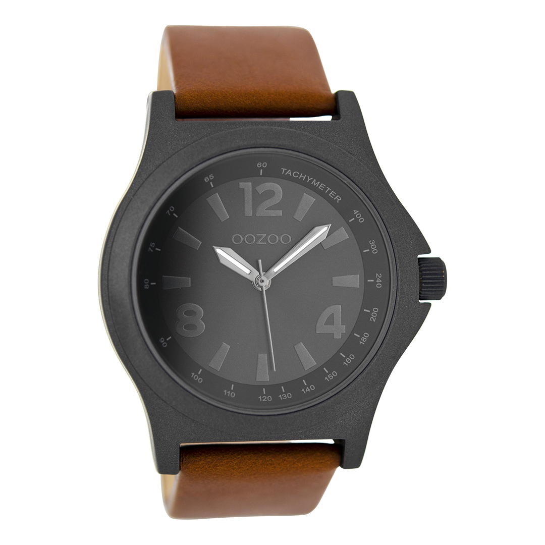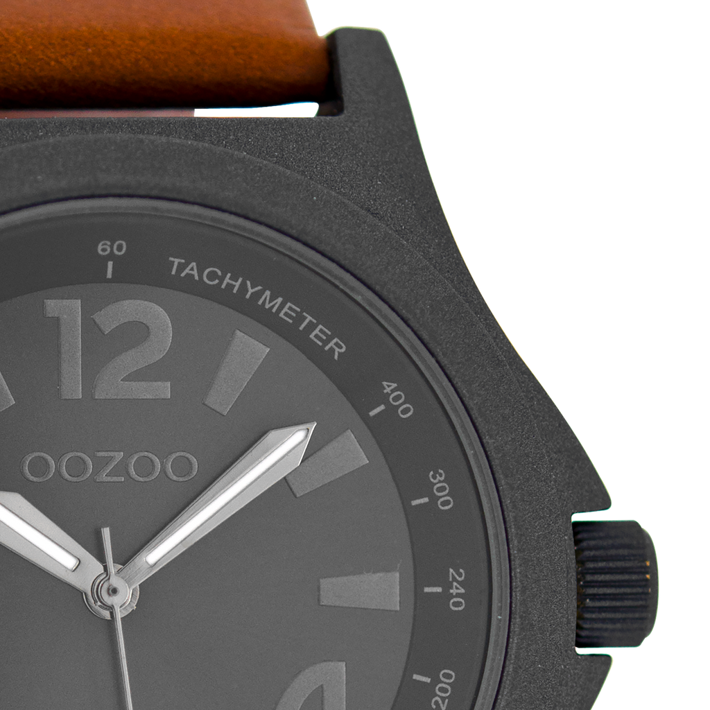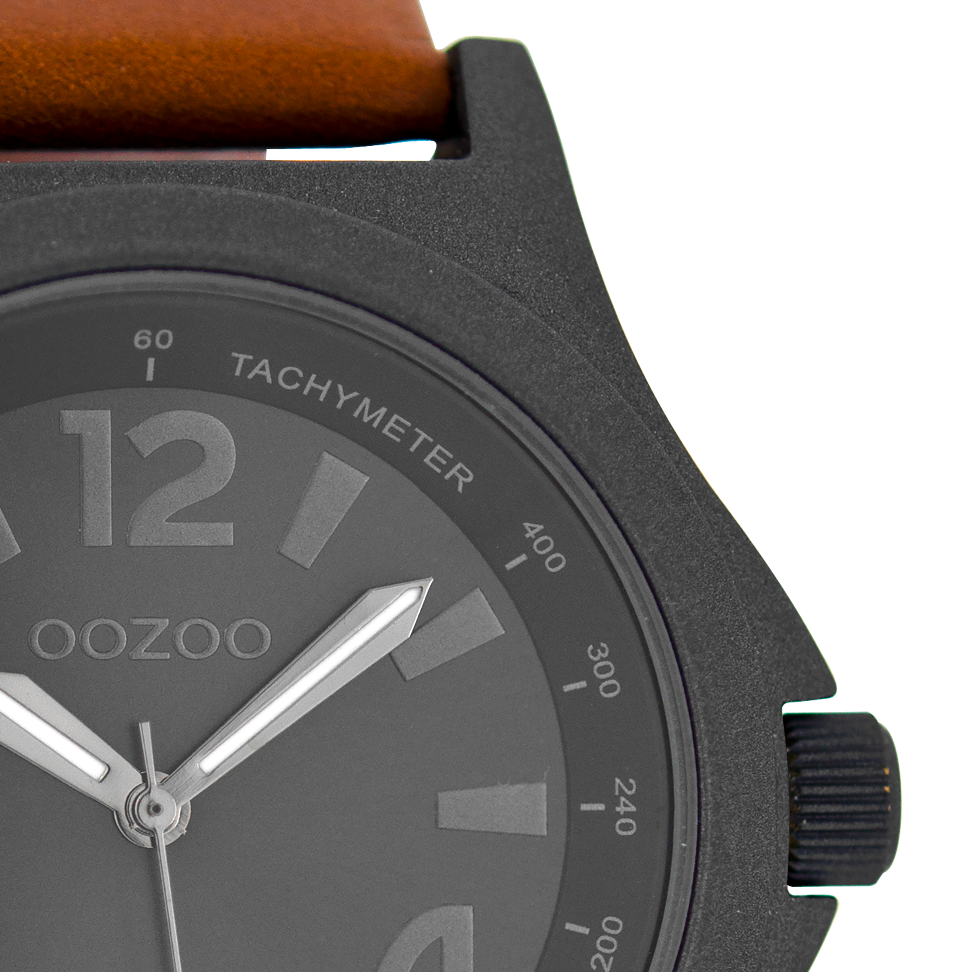 OOZOO Montre en noir avec bracelet en cuir en marron - C6879