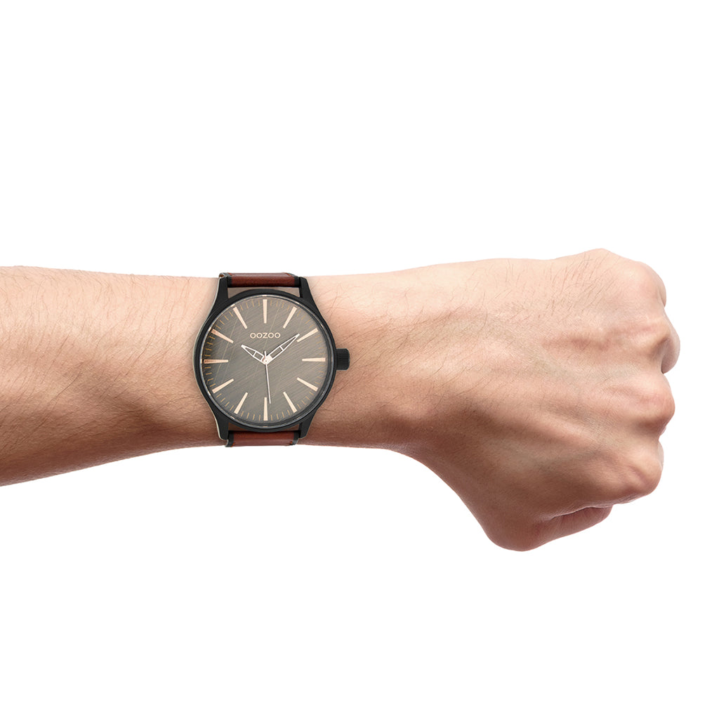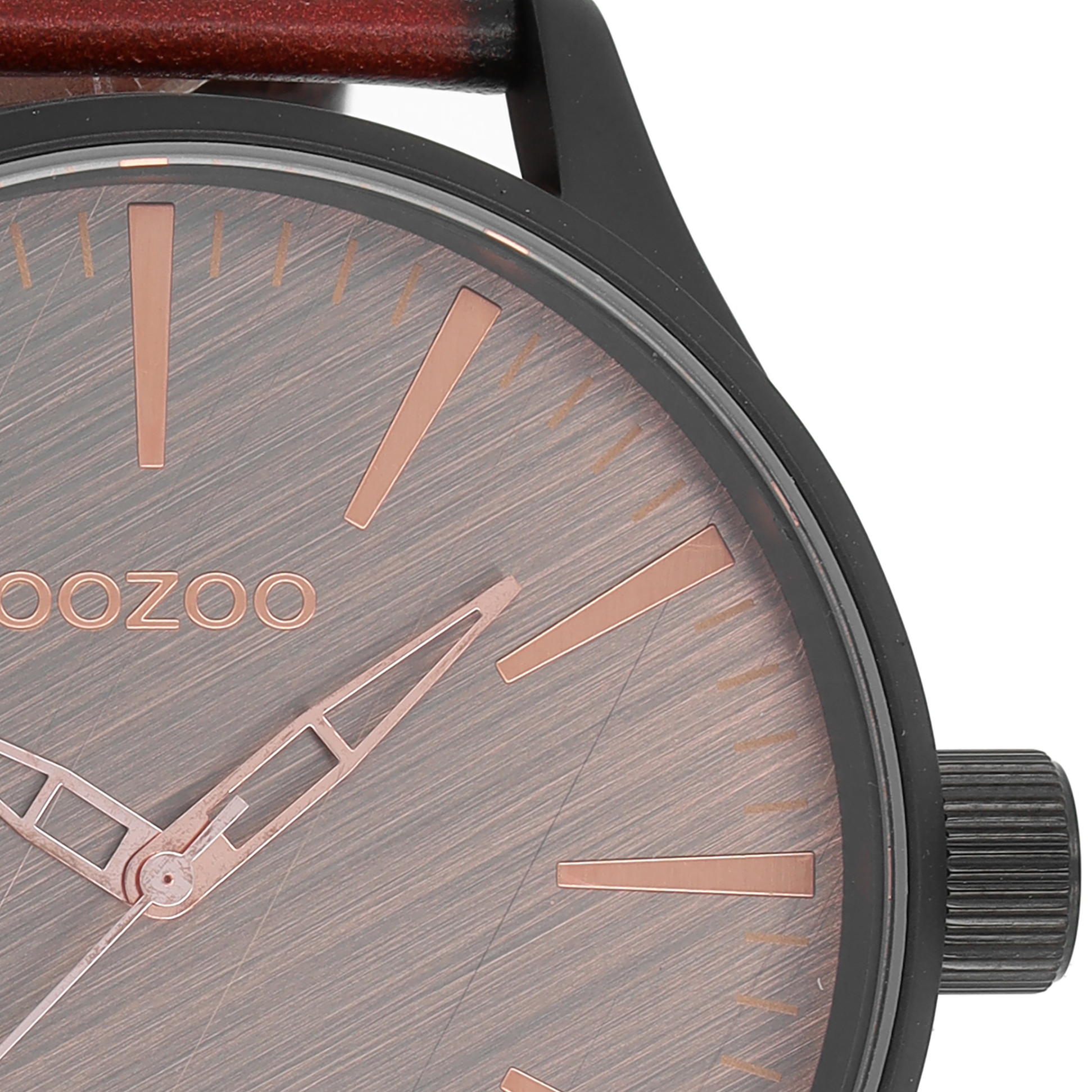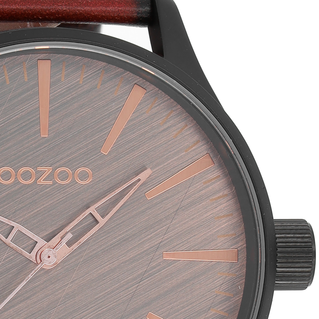 OOZOO Montre en noir avec bracelet en cuir en rouge/marron - C7862
