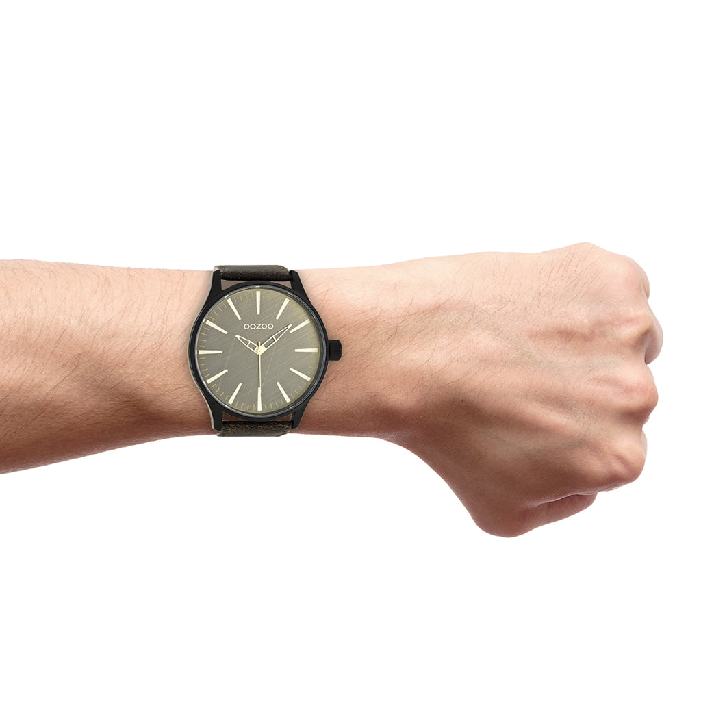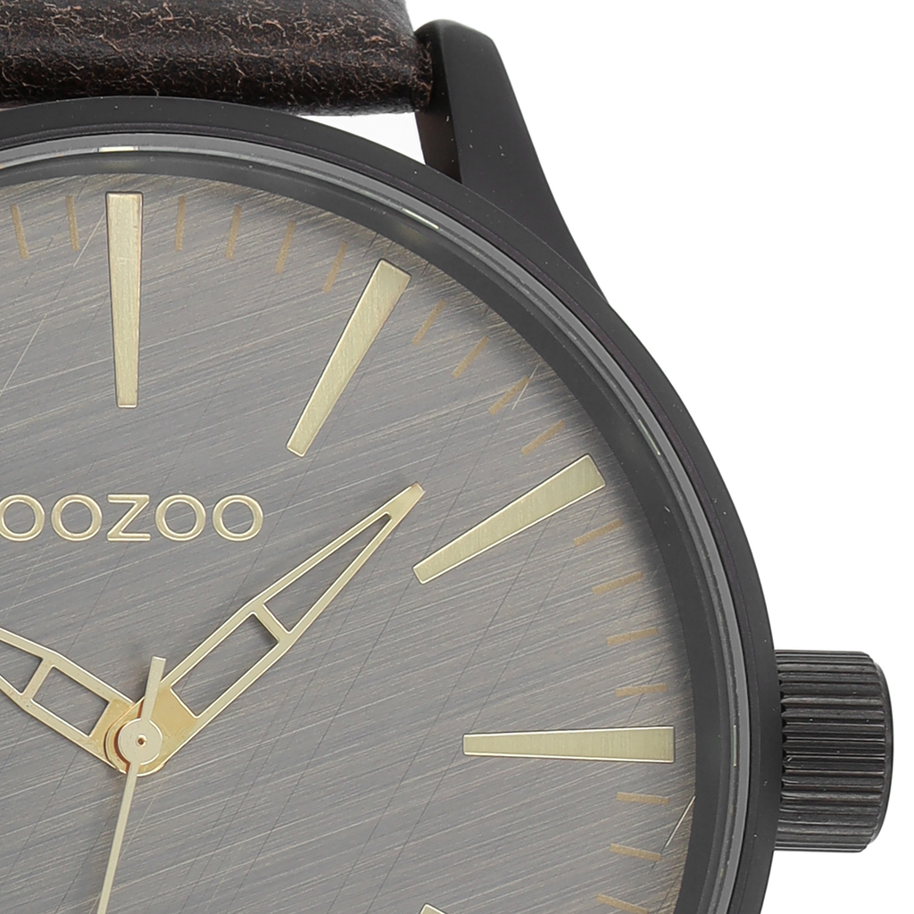 OOZOO Montre en noir avec bracelet en cuir en marron foncé - C7863