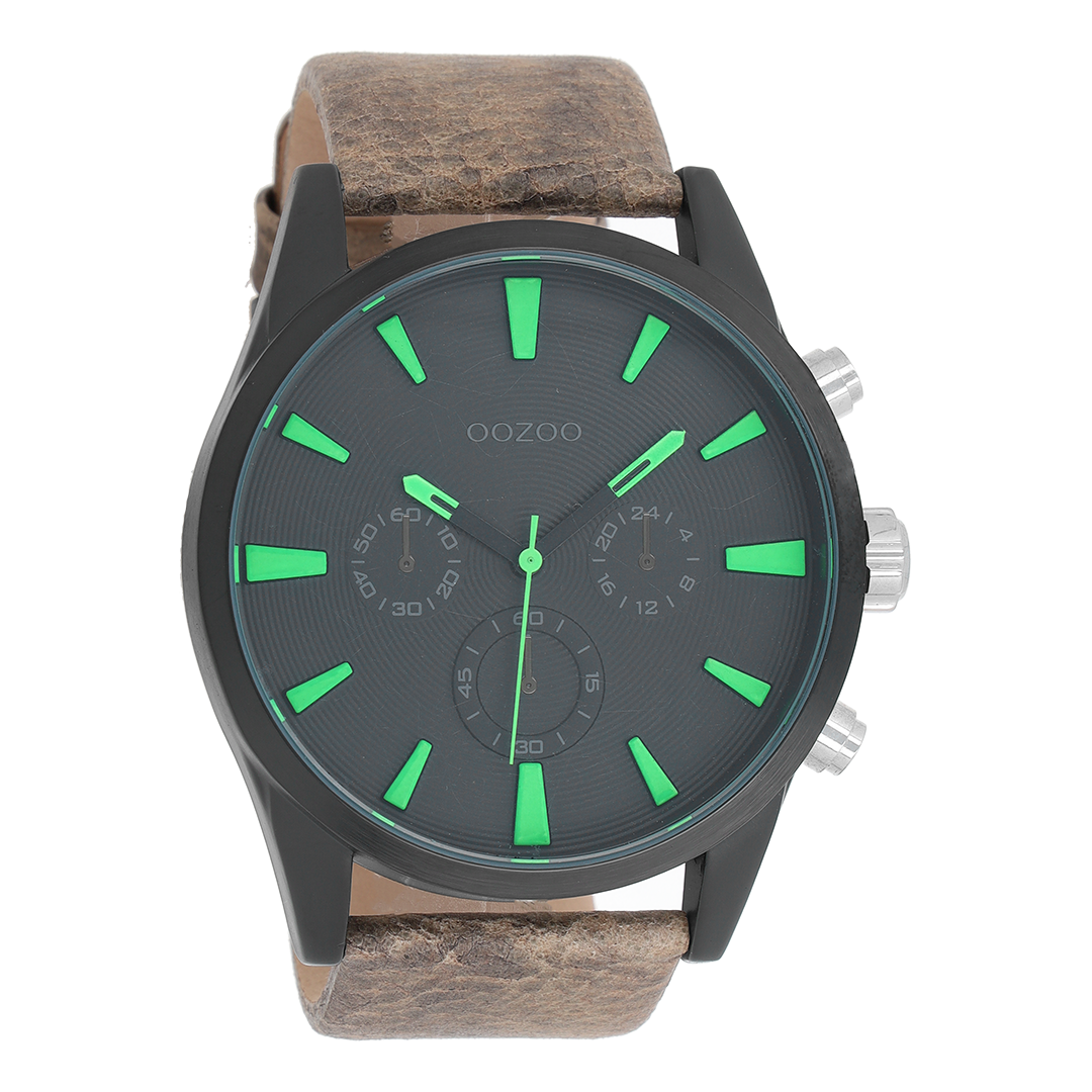 OOZOO Montre en noir avec bracelet en cuir en gris - C8202