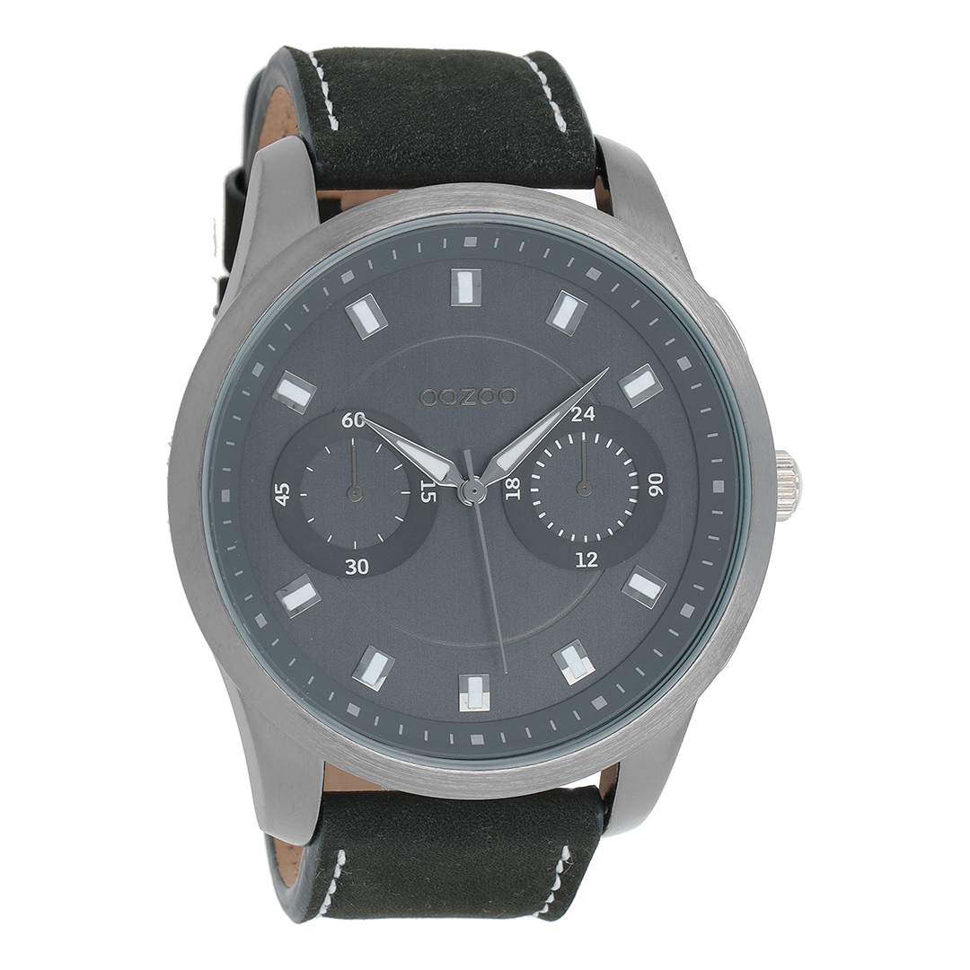 OOZOO Montre en titane avec bracelet en cuir en bleu foncé - C8207