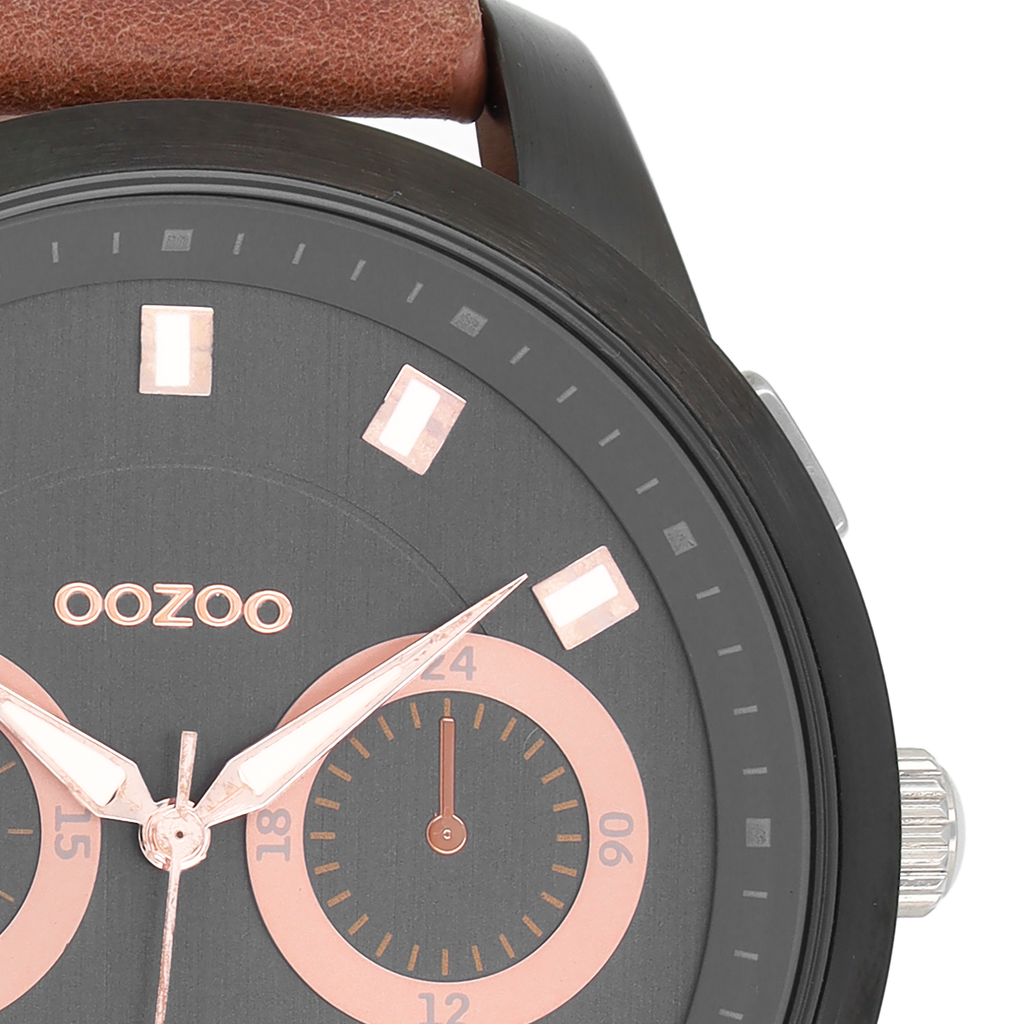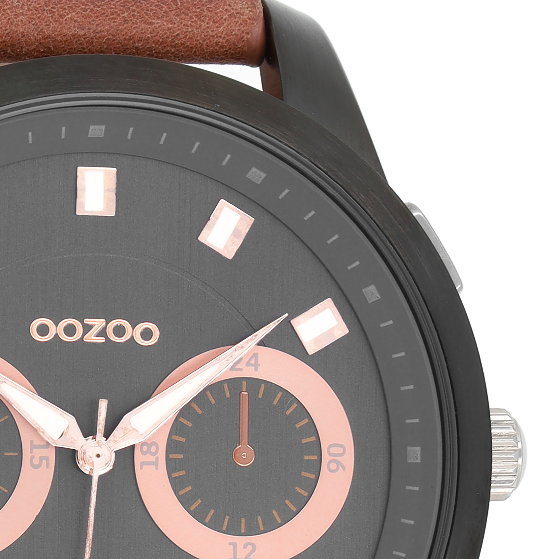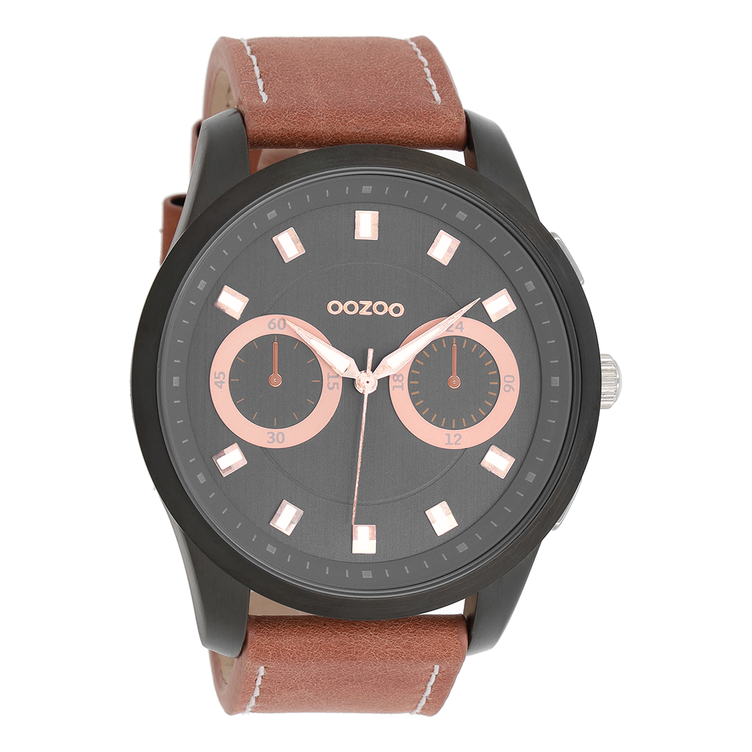 OOZOO Montre en noir avec bracelet en cuir en marron - C8208