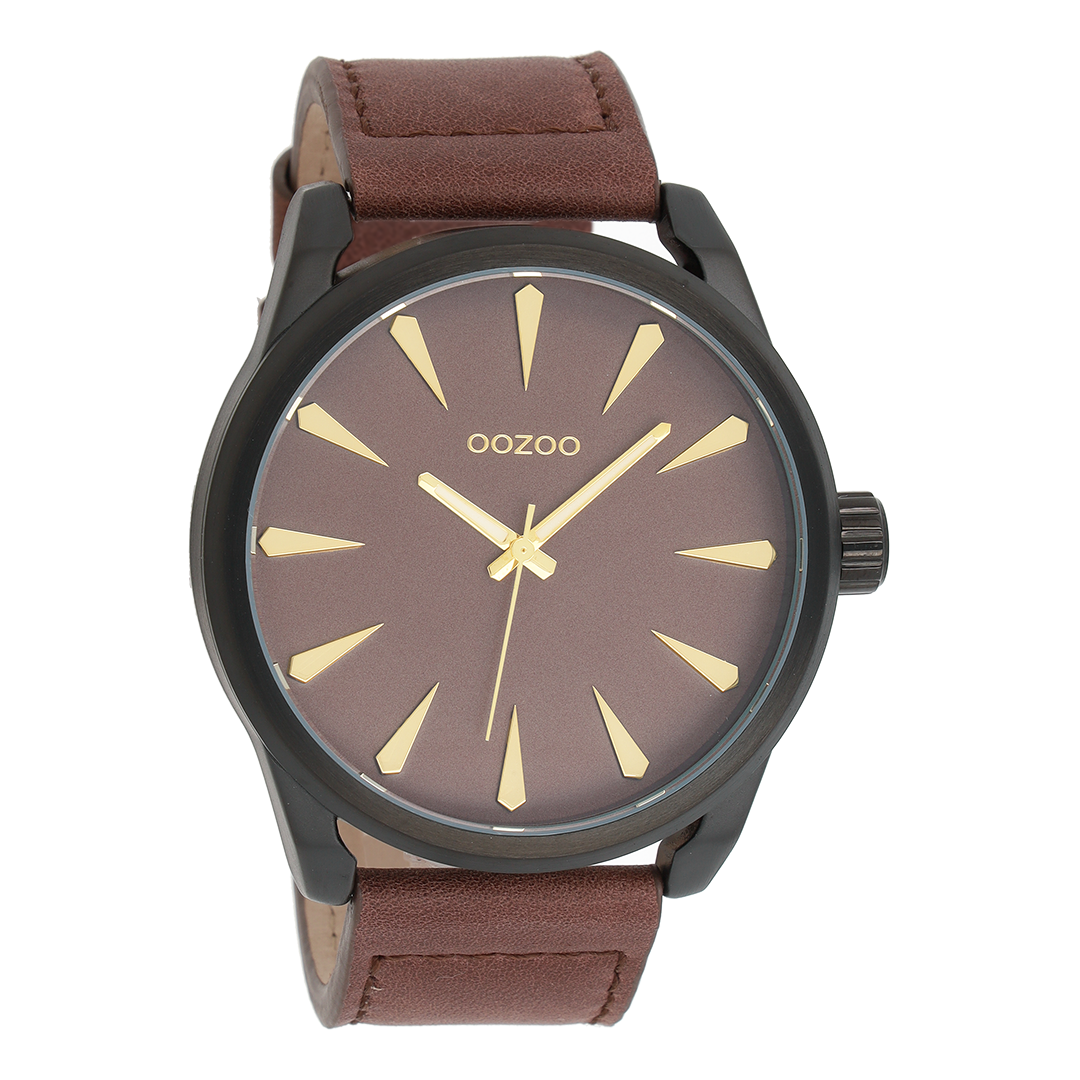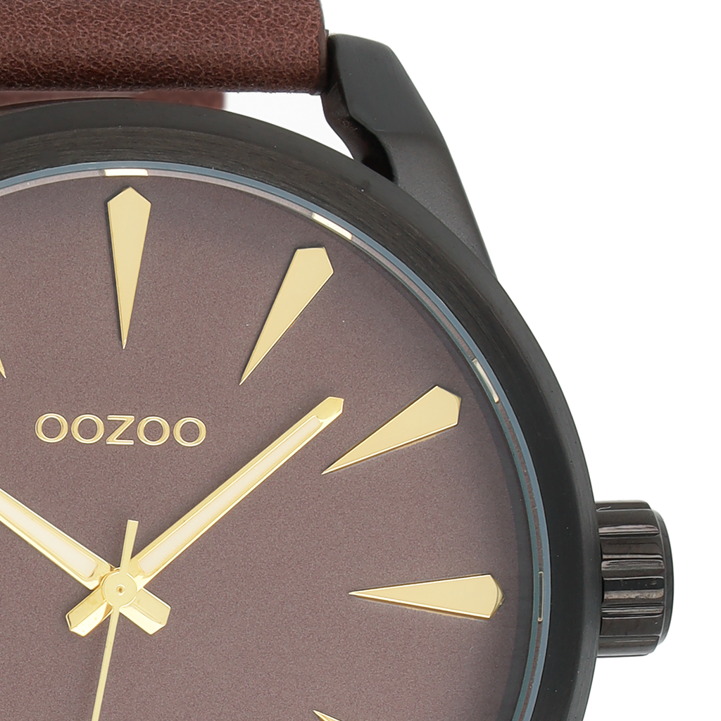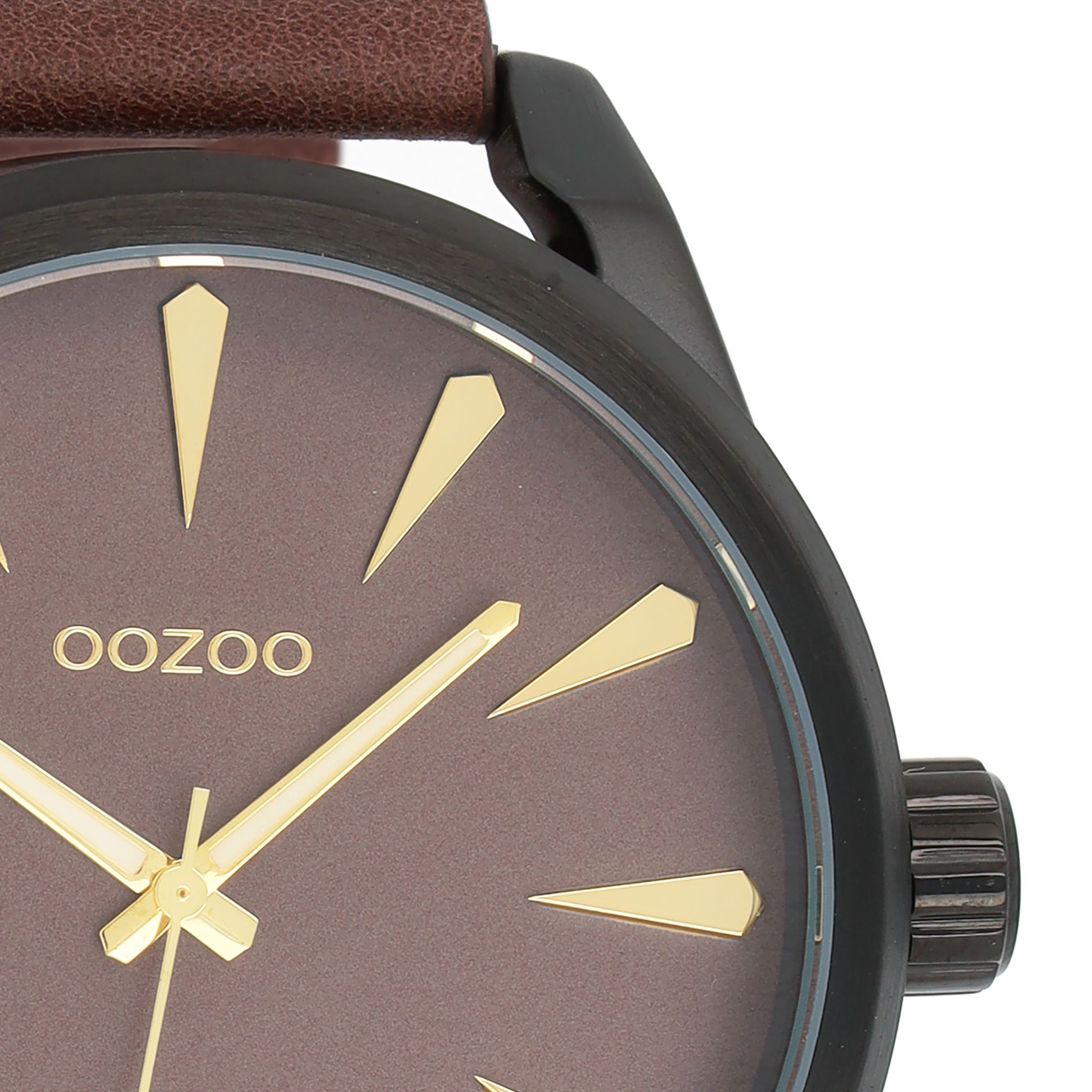 OOZOO Montre en noir avec bracelet en cuir en marron - C8227