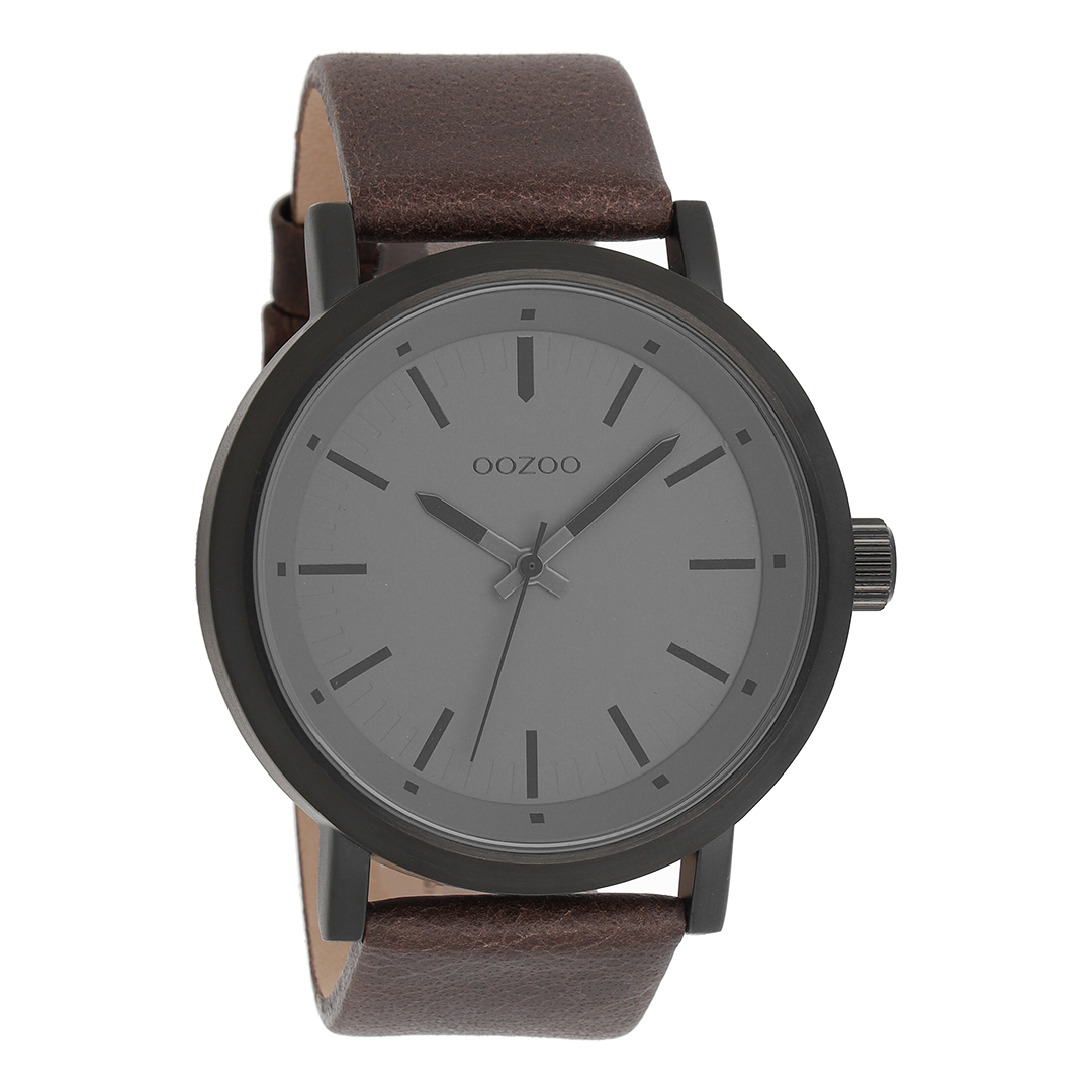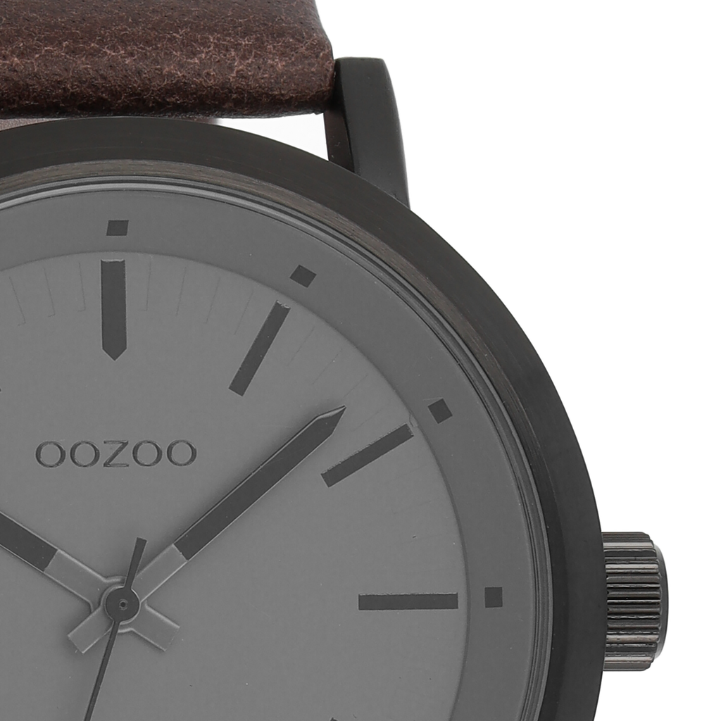 OOZOO Montre en noir avec bracelet en cuir en marron - C8254