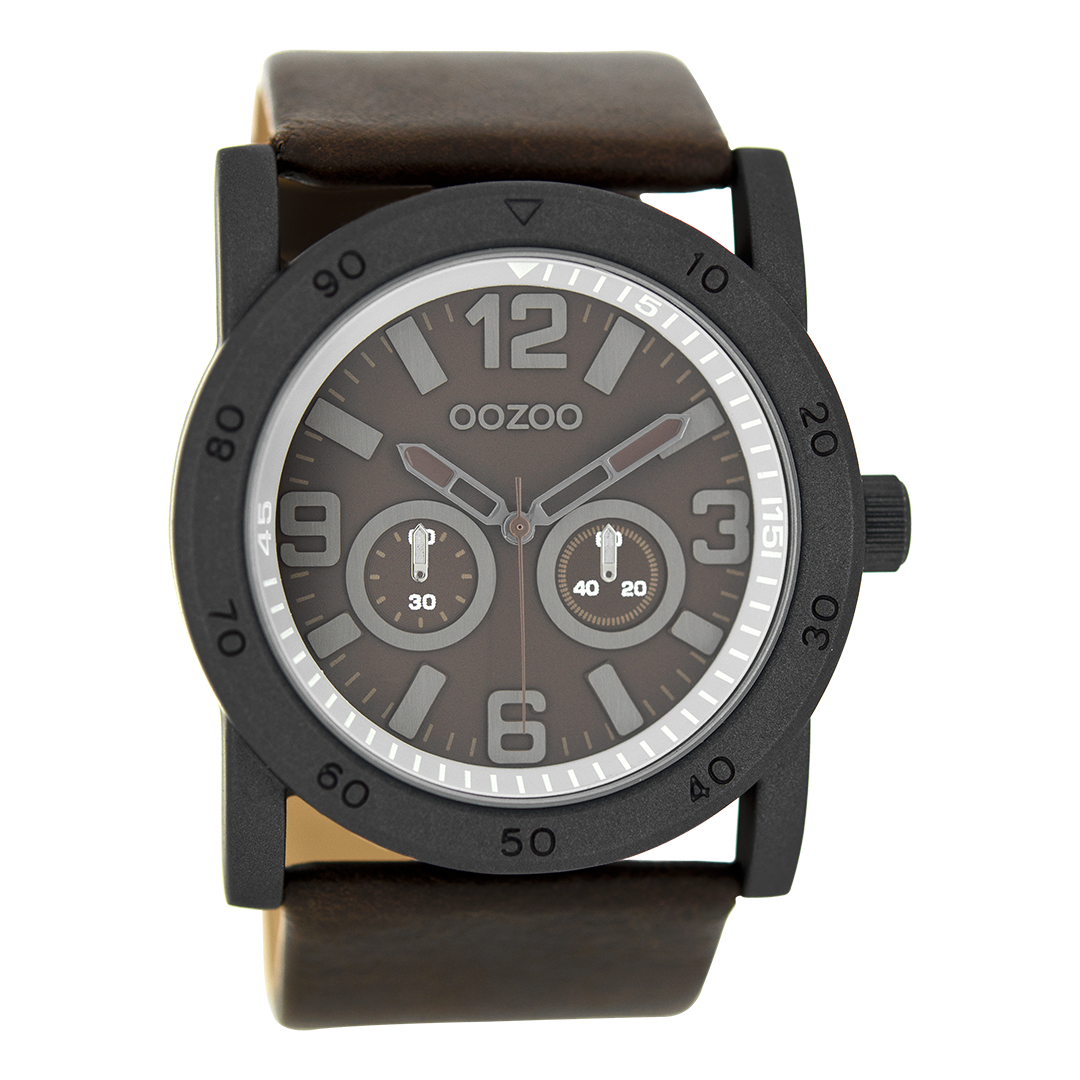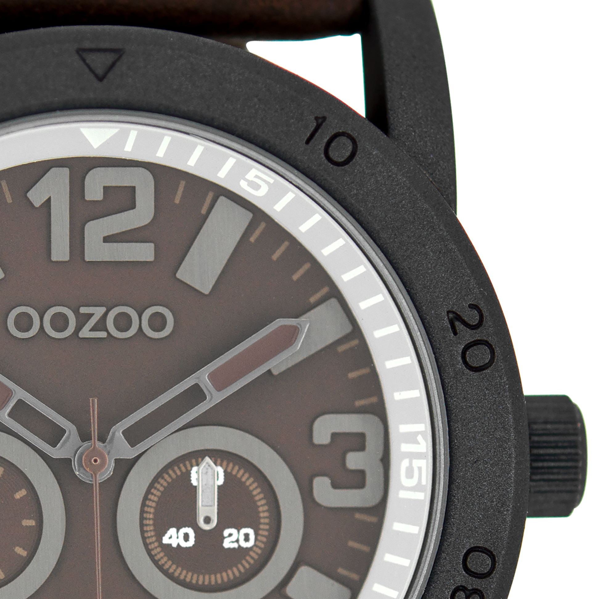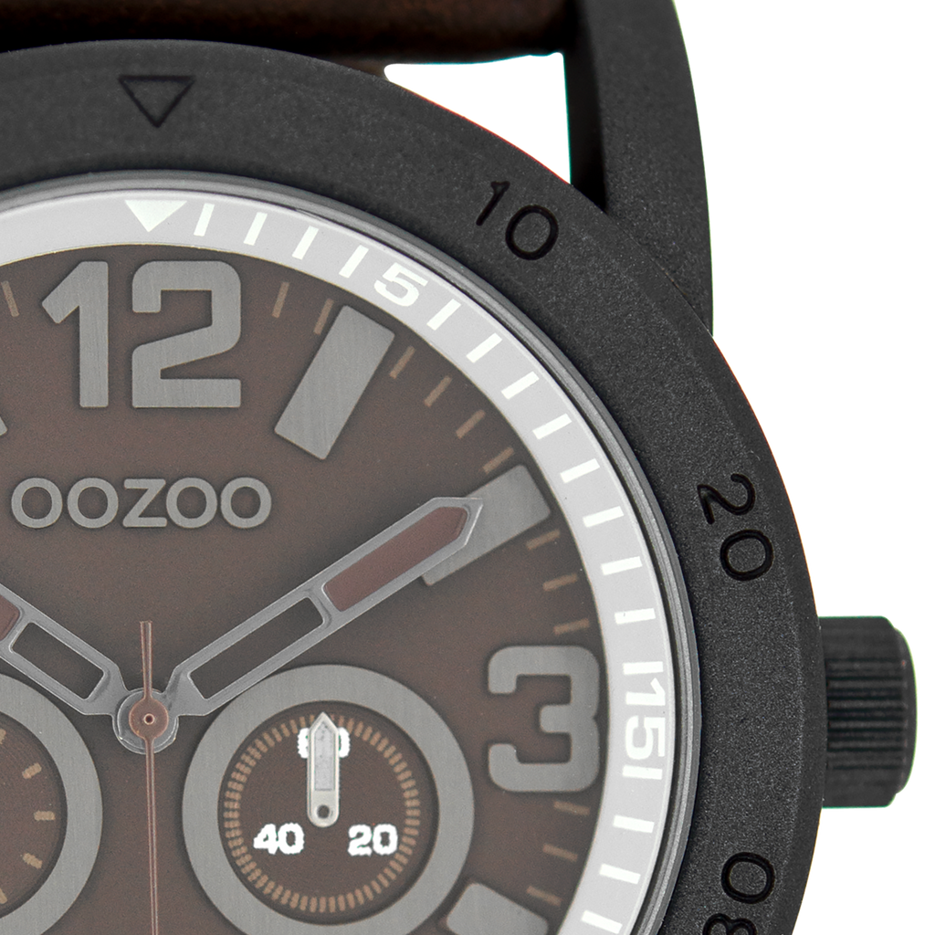 OOZOO Montre en noir avec bracelet en cuir en marron foncé - C8308