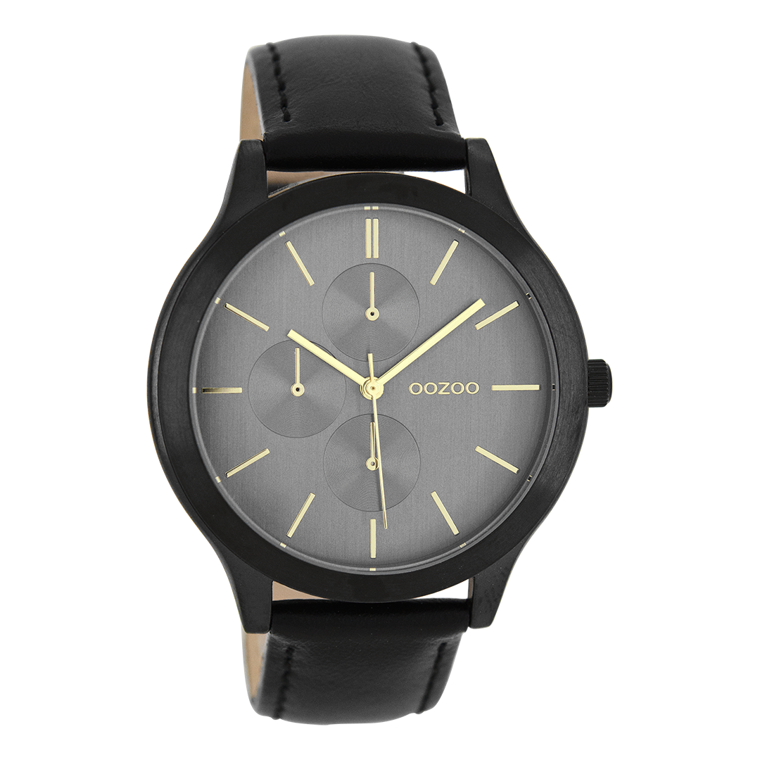 OOZOO Montre en noir avec bracelet en cuir en noir - C8374
