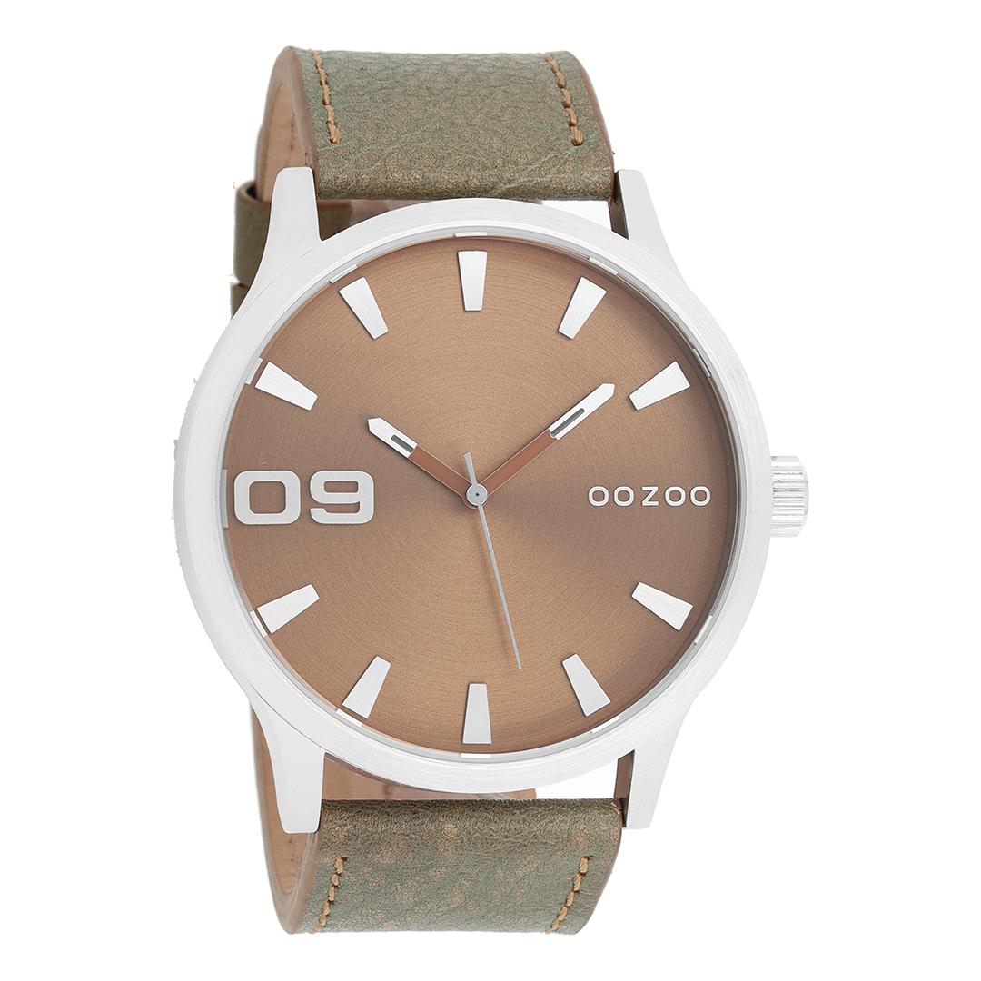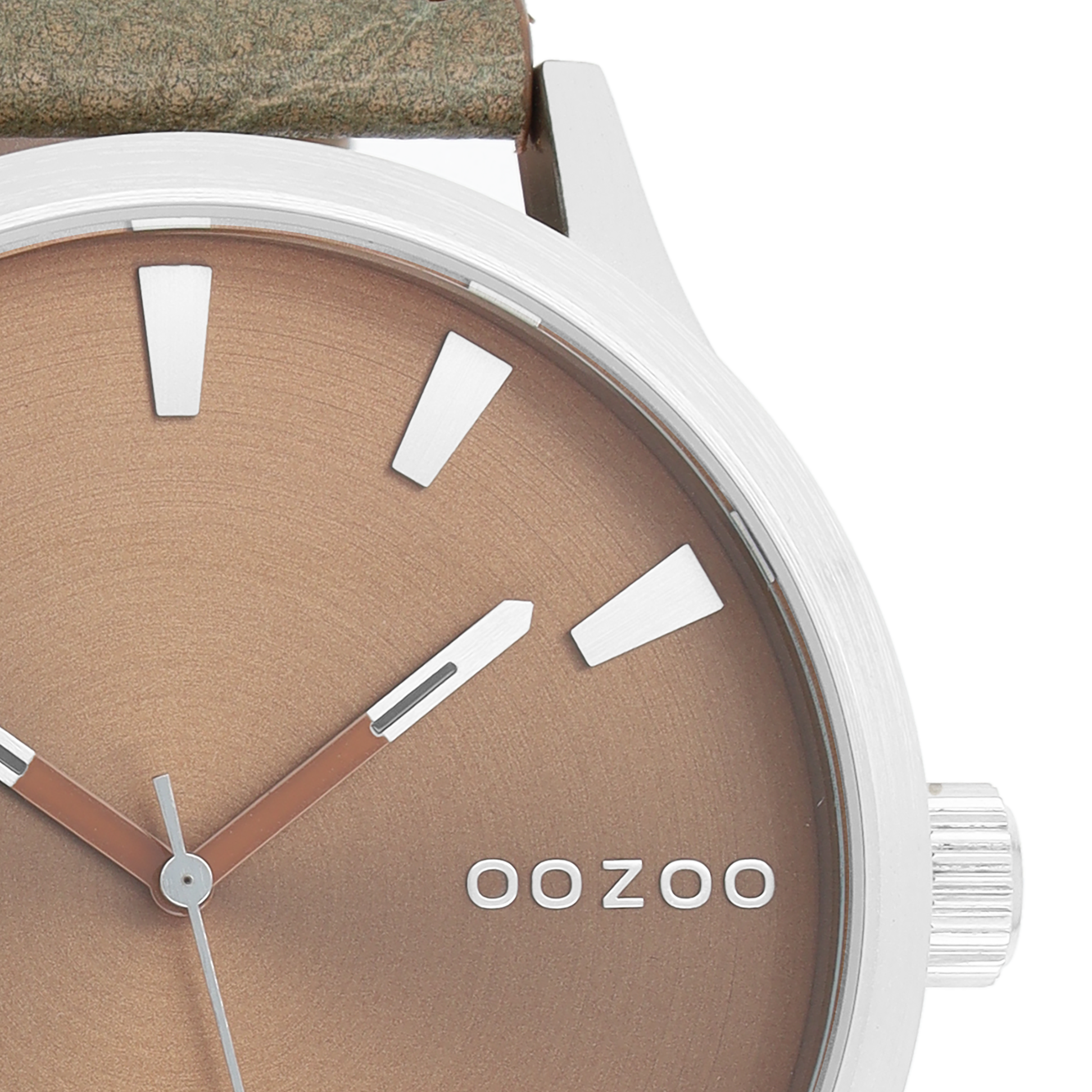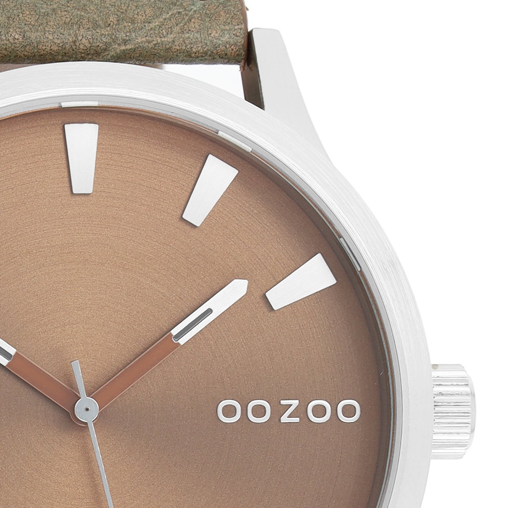 OOZOO Montre en couleur argent avec bracelet en cuir en marron - C8530