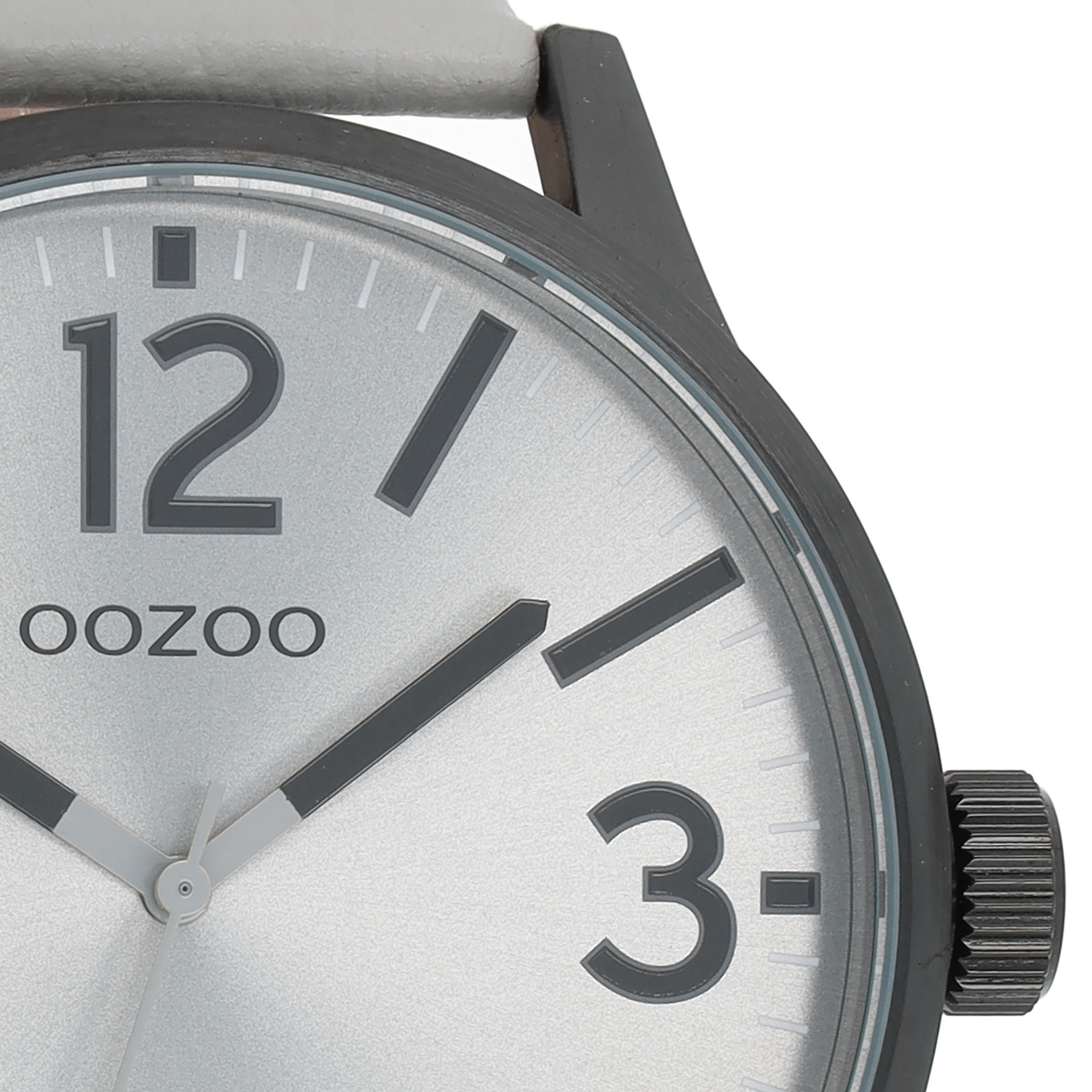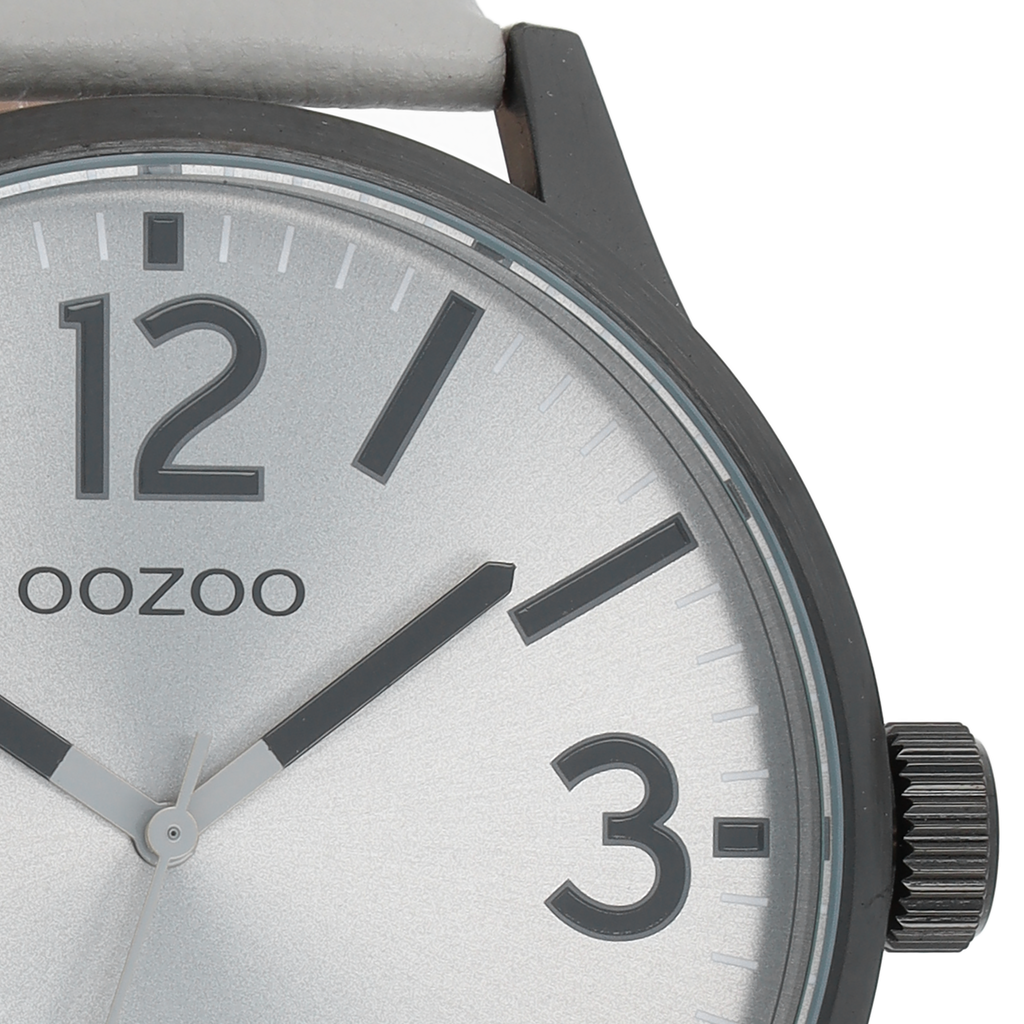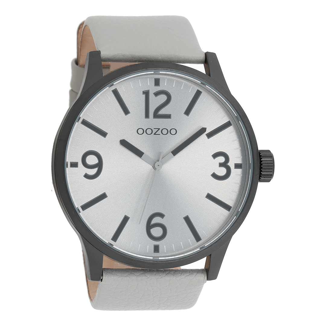 OOZOO Montre en noir avec bracelet en cuir en gris clair - C8571