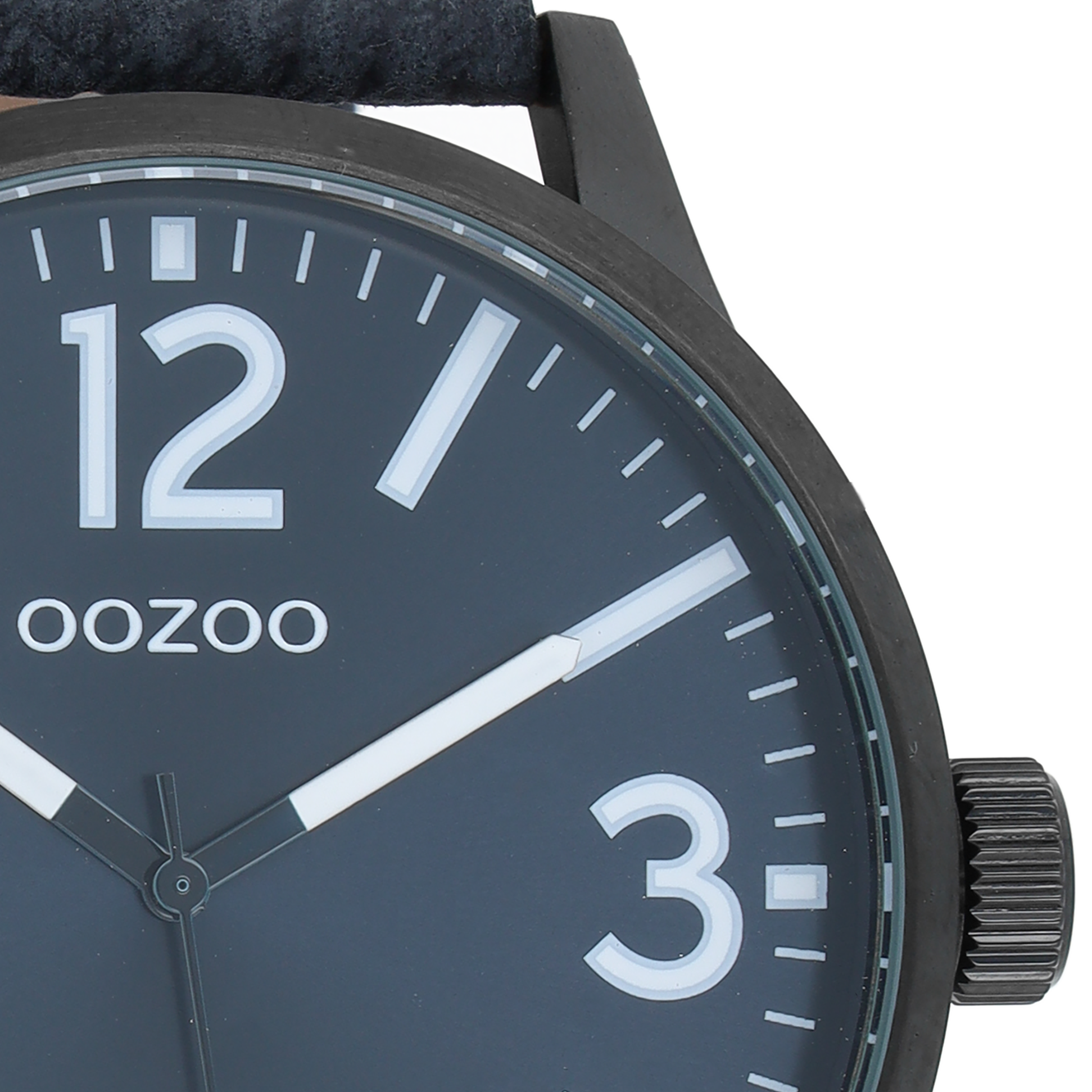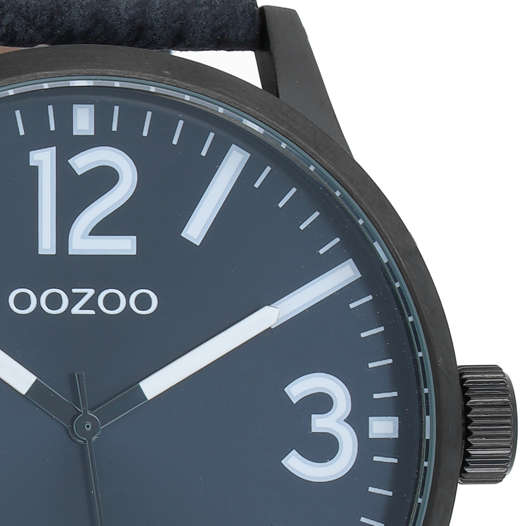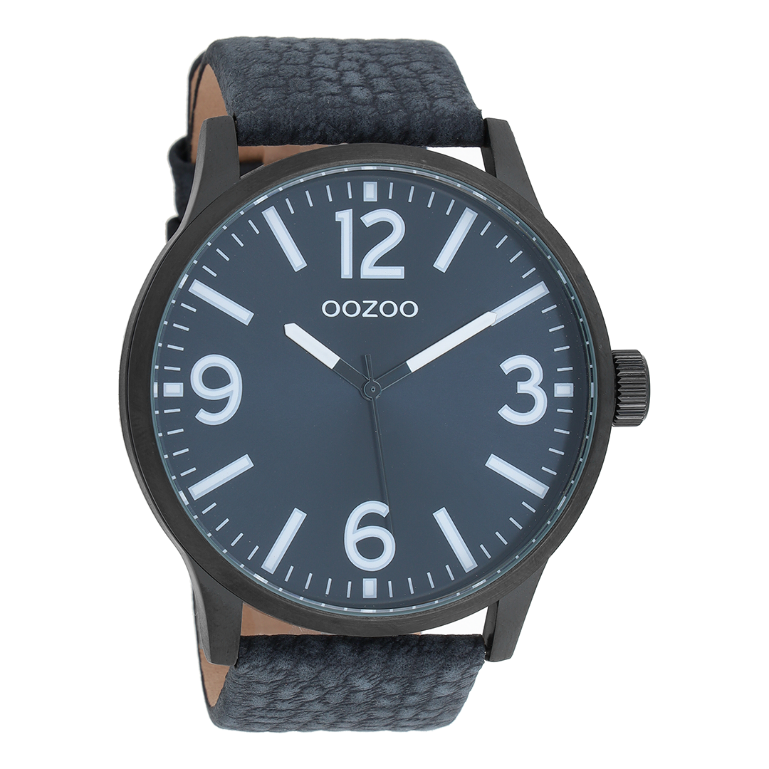 OOZOO Montre en noir avec bracelet en cuir en bleu foncé - C8572