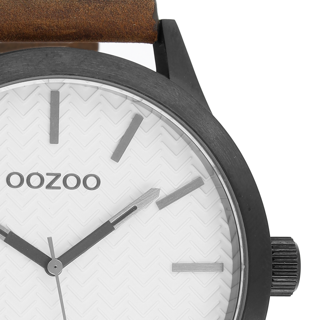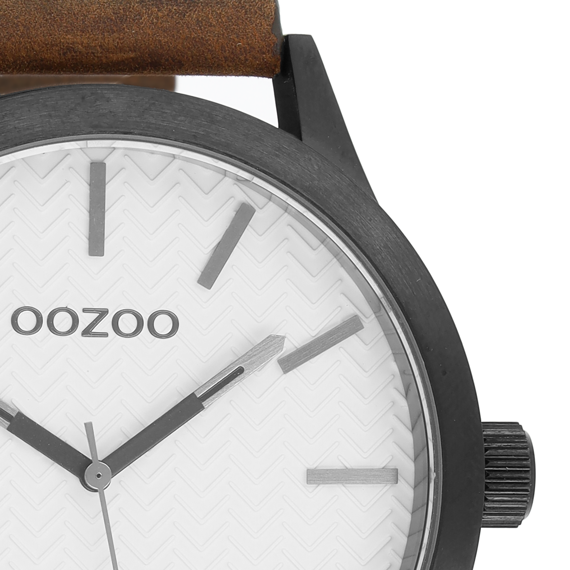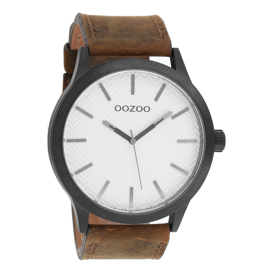 OOZOO Montre en noir avec bracelet en cuir en marron foncé - C9011