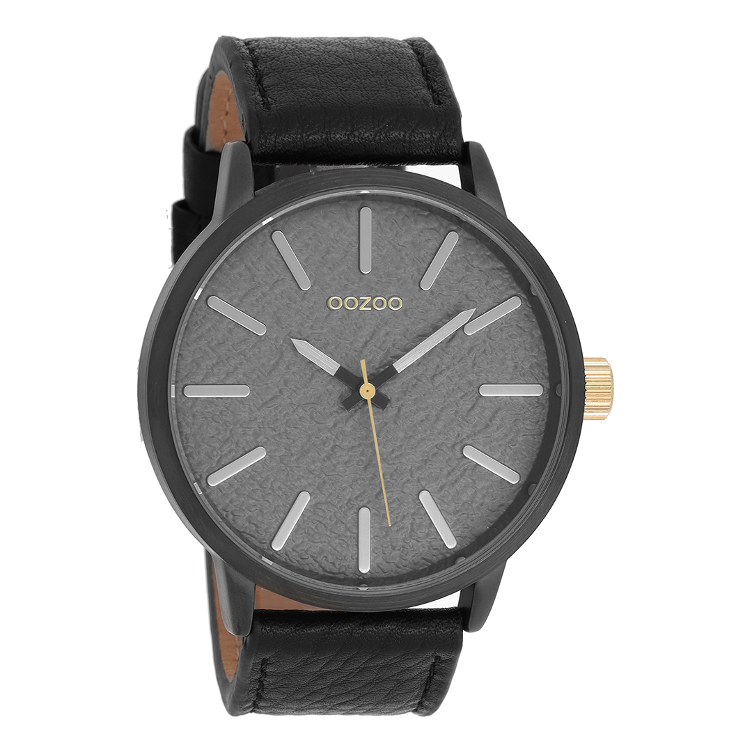 OOZOO Montre en noir avec bracelet en cuir en noir - C9028