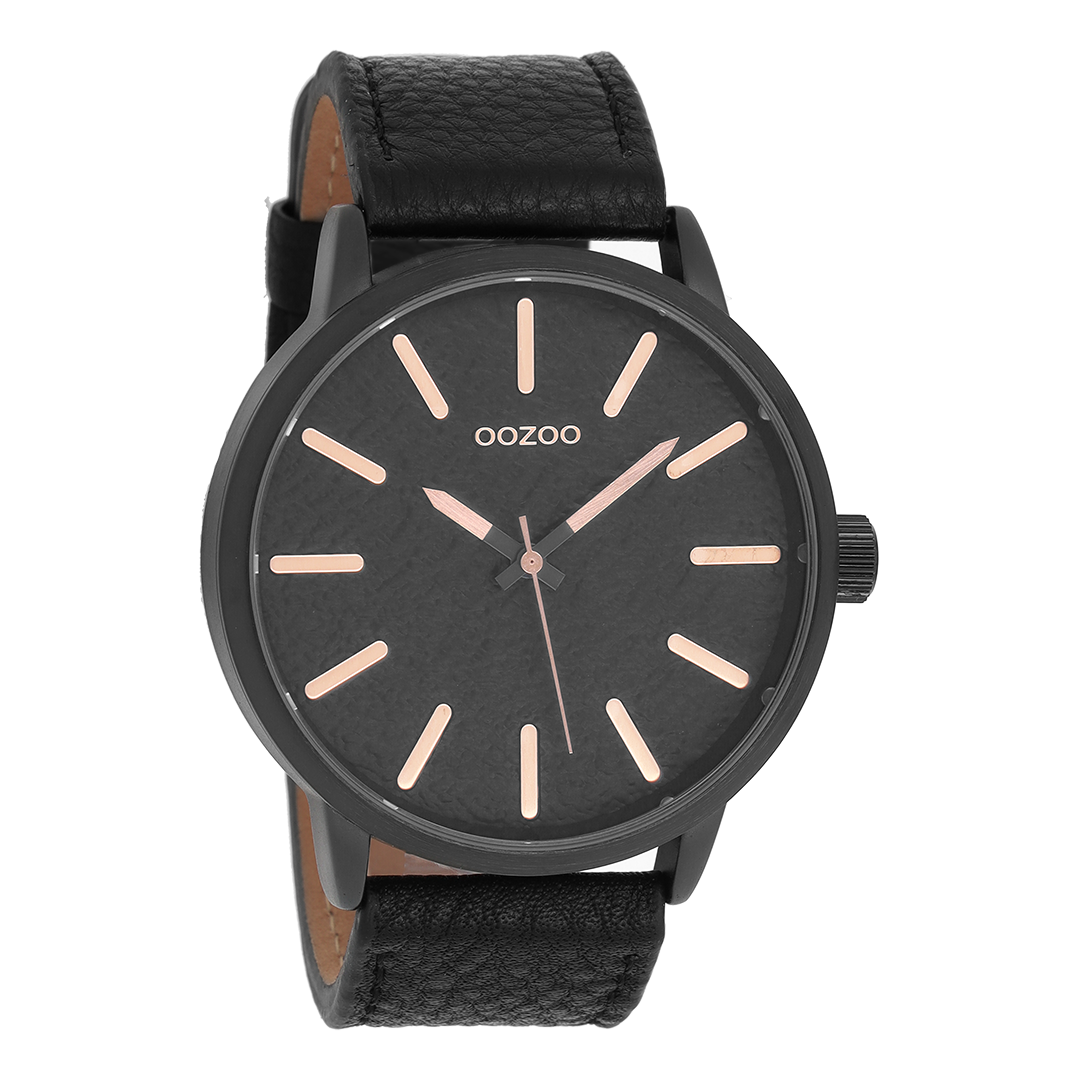 OOZOO Montre en noir avec bracelet en cuir en noir - C9029