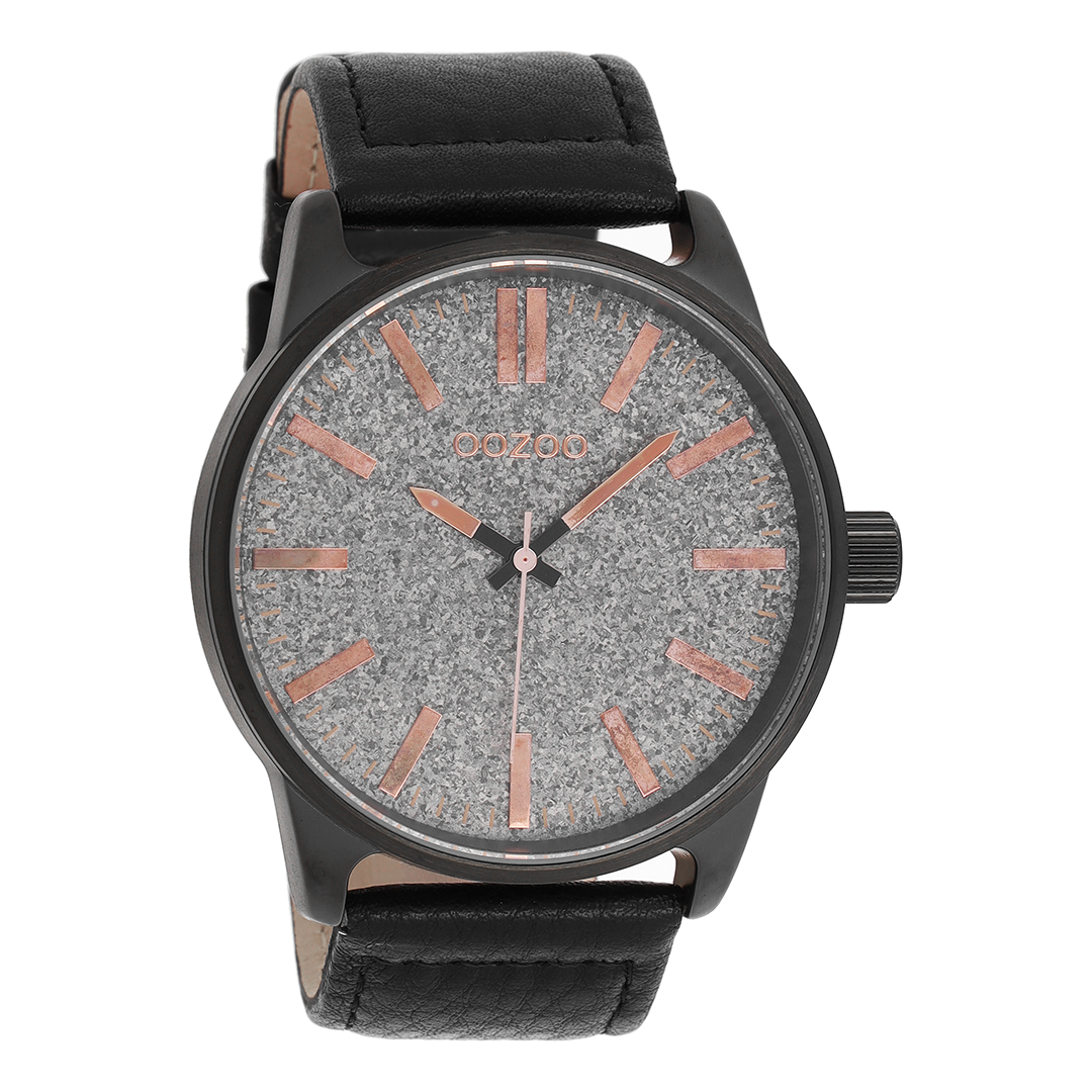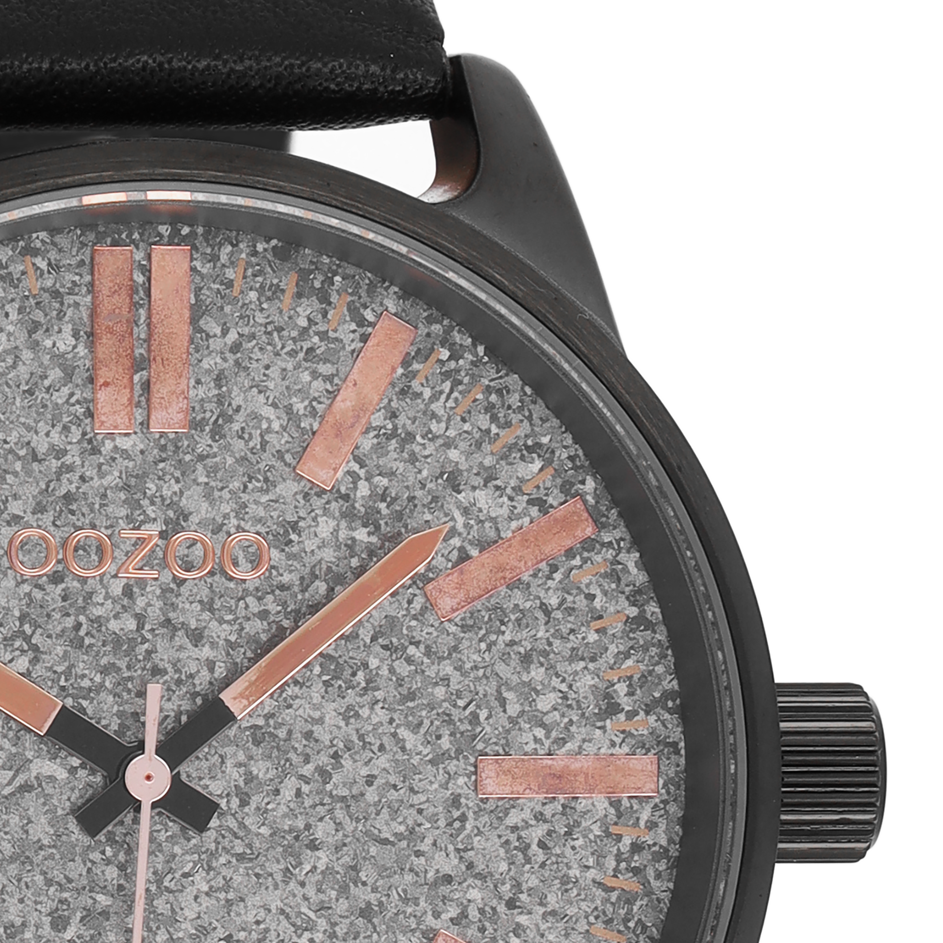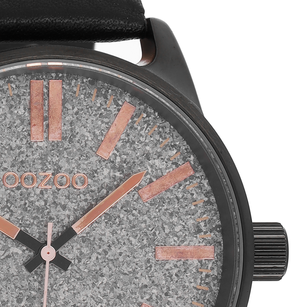 OOZOO Montre en noir avec bracelet en cuir en noir - C9063