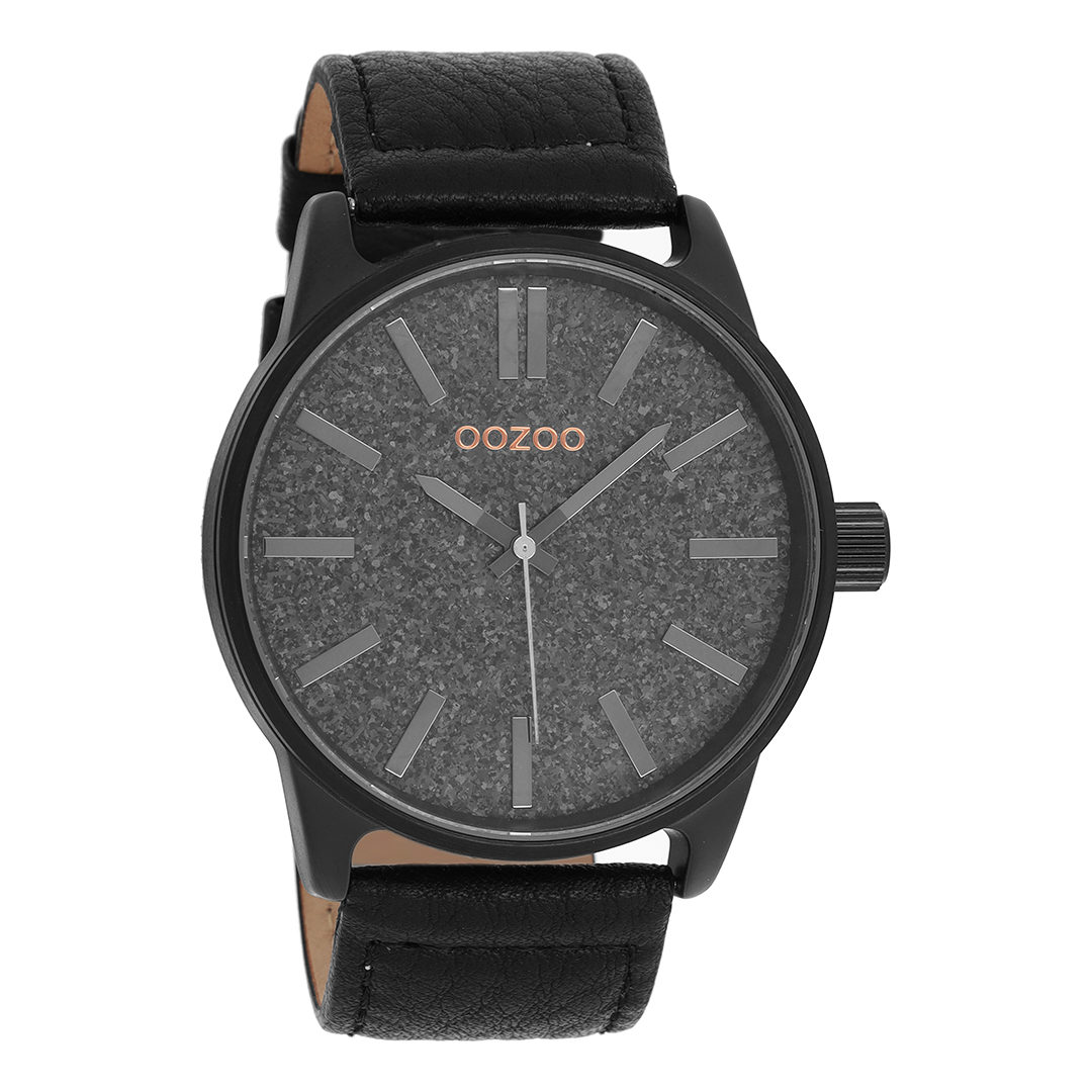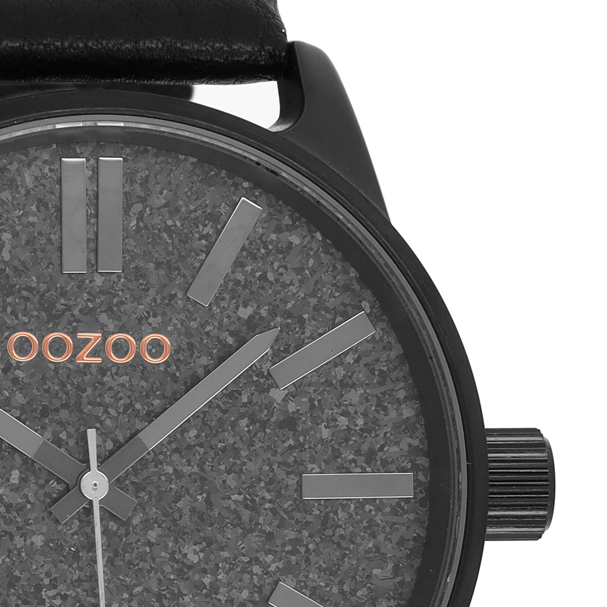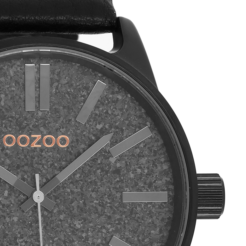OOZOO Montre en noir avec bracelet en cuir en noir - C9064