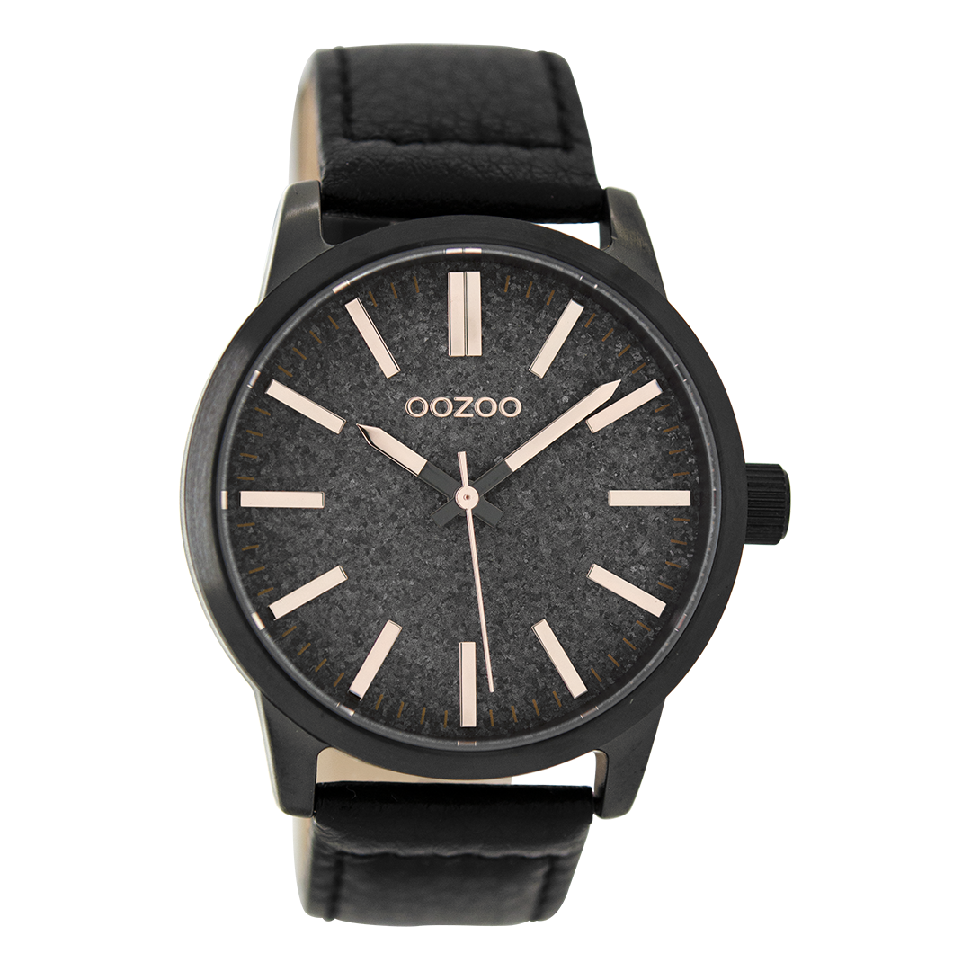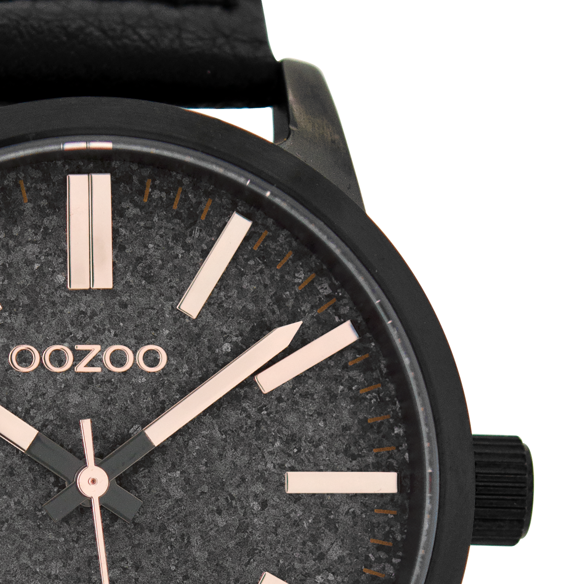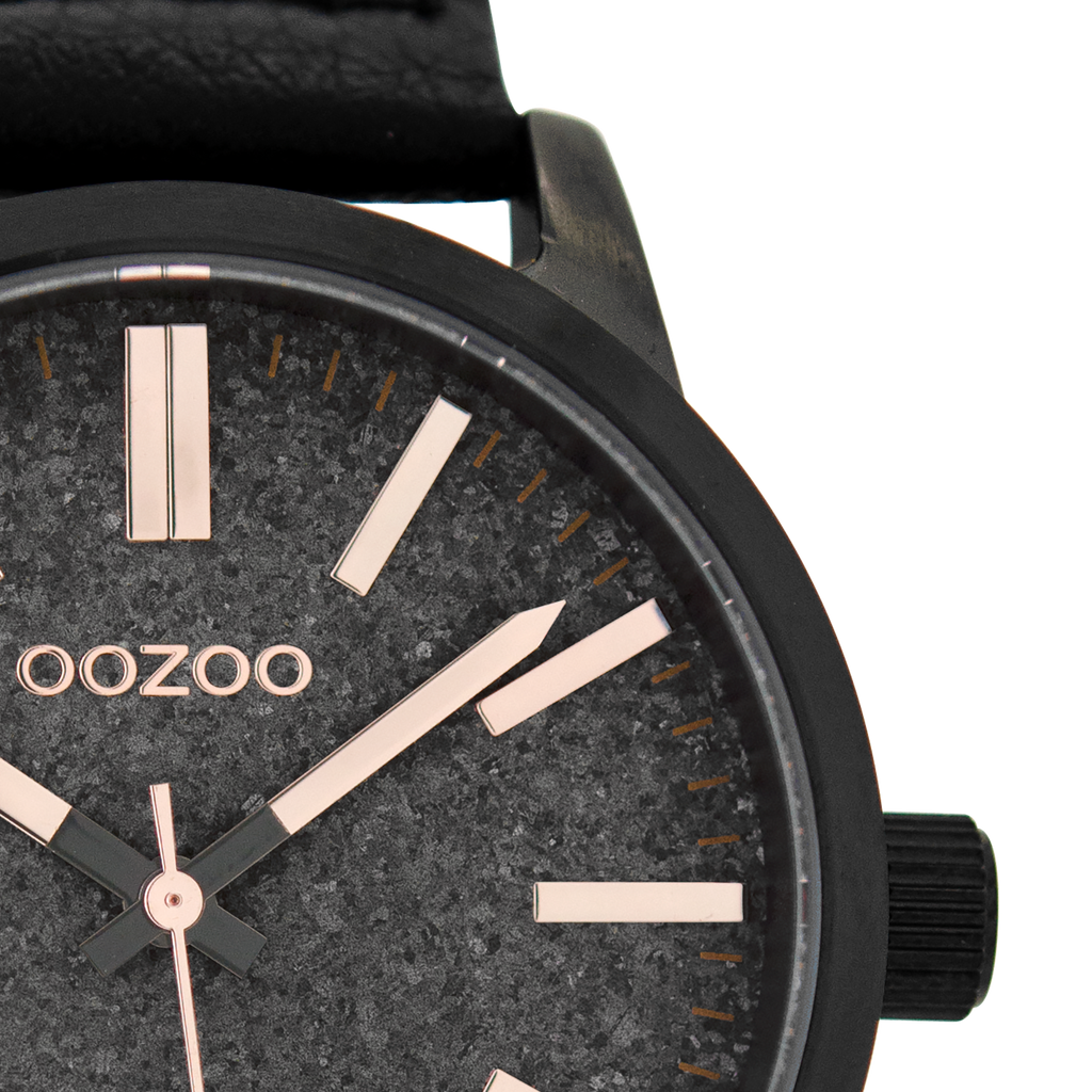 OOZOO Montre en noir avec bracelet en cuir en noir - C9068