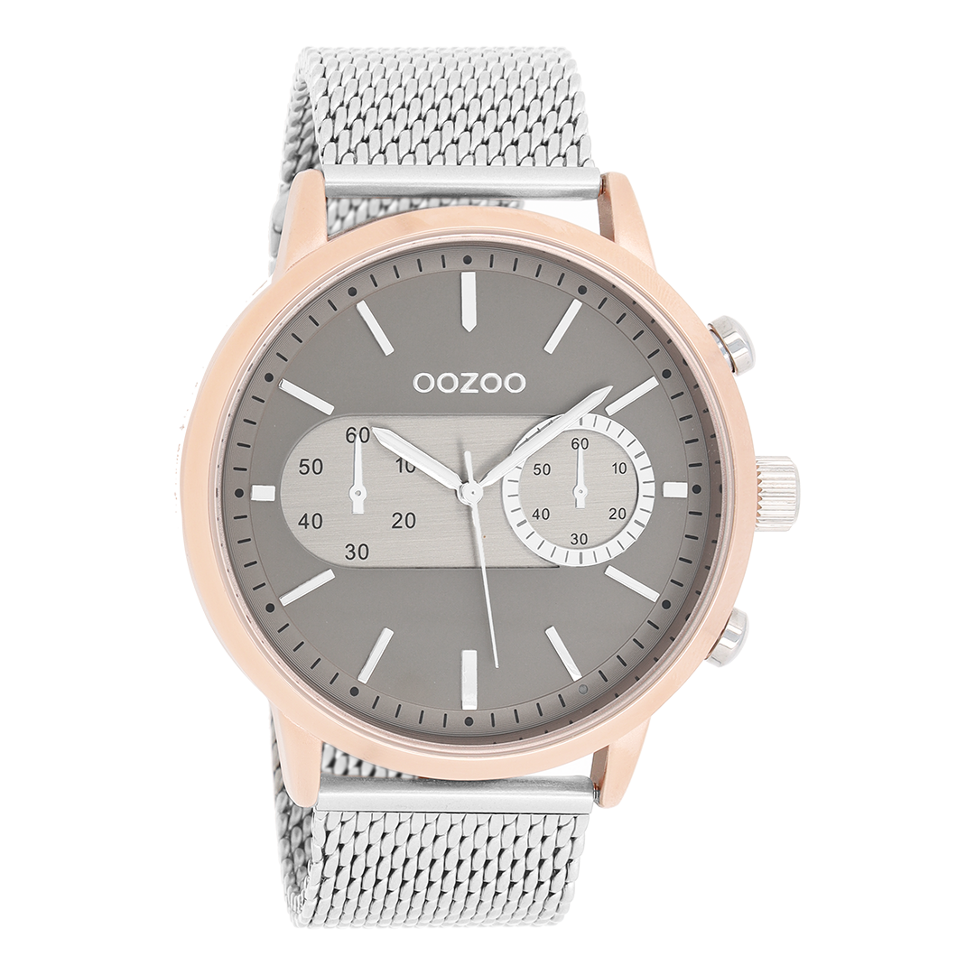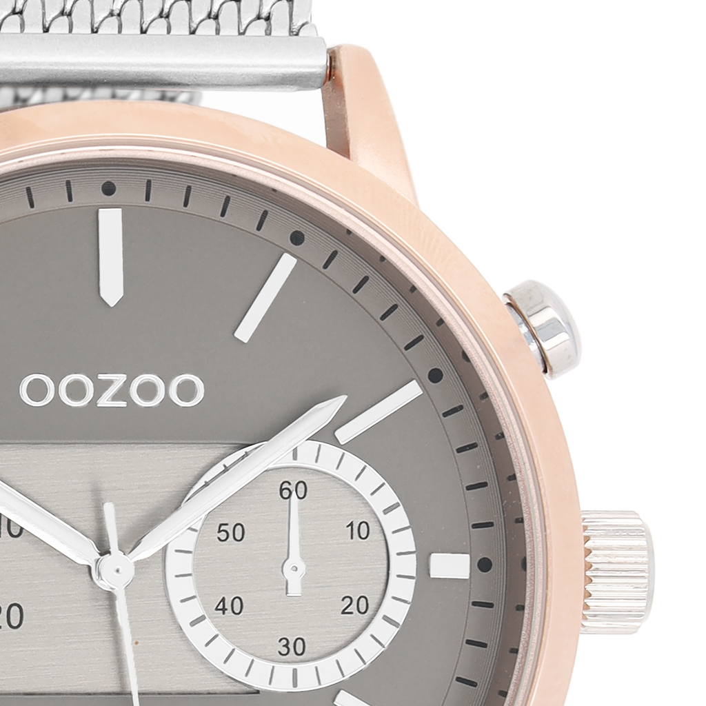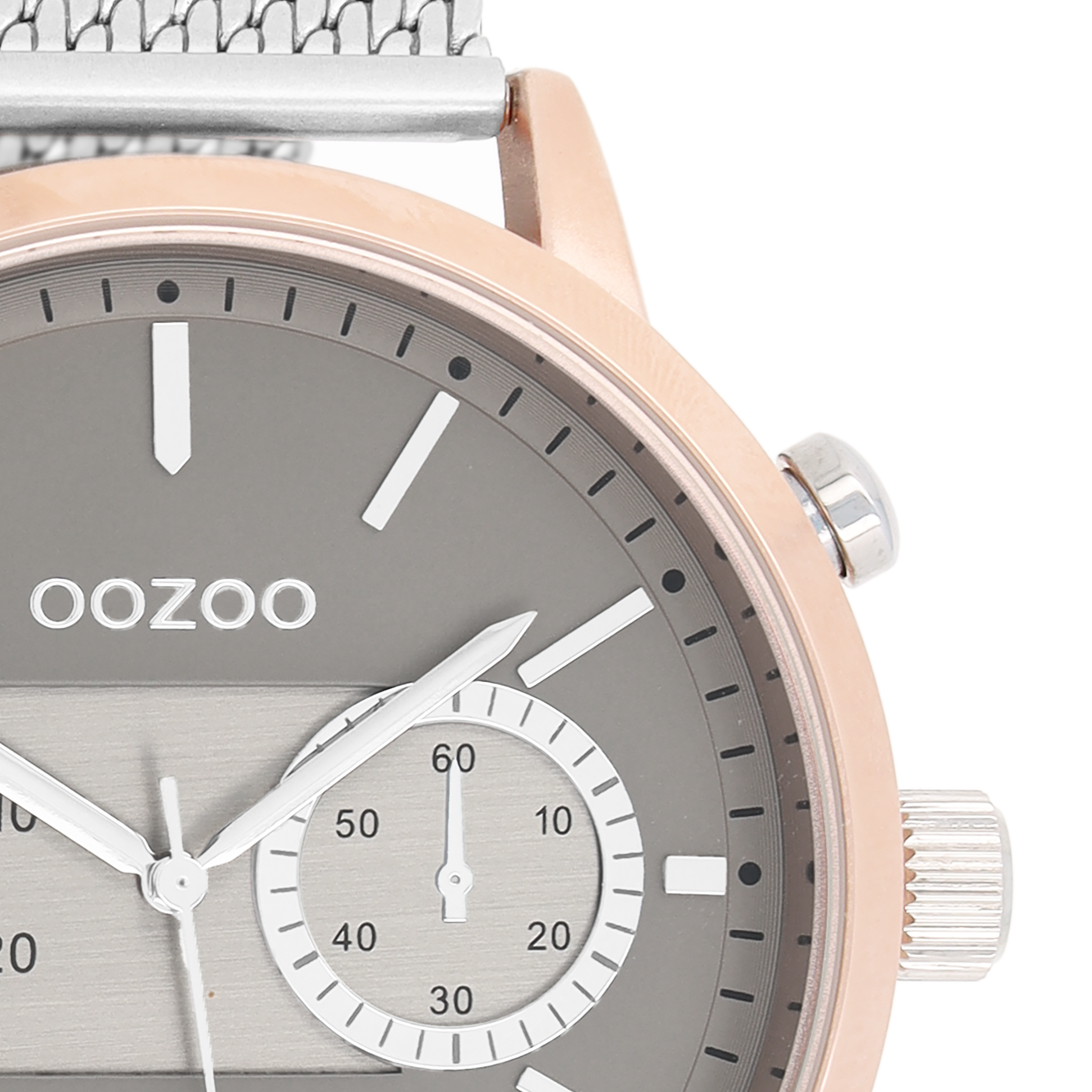 OOZOO Montre en couleur or rose avec bracelet en mesh en couleur argent - C9072