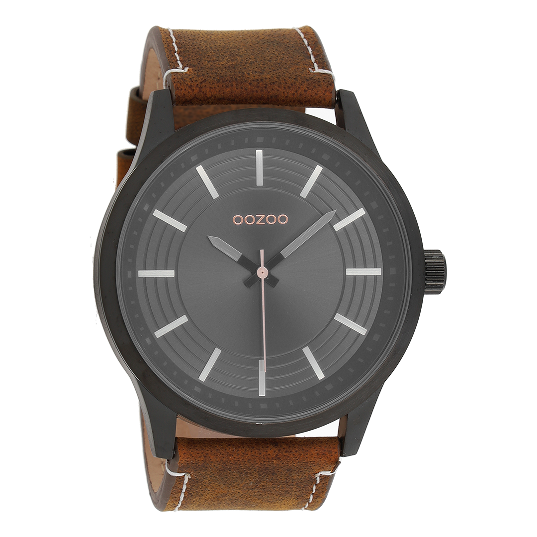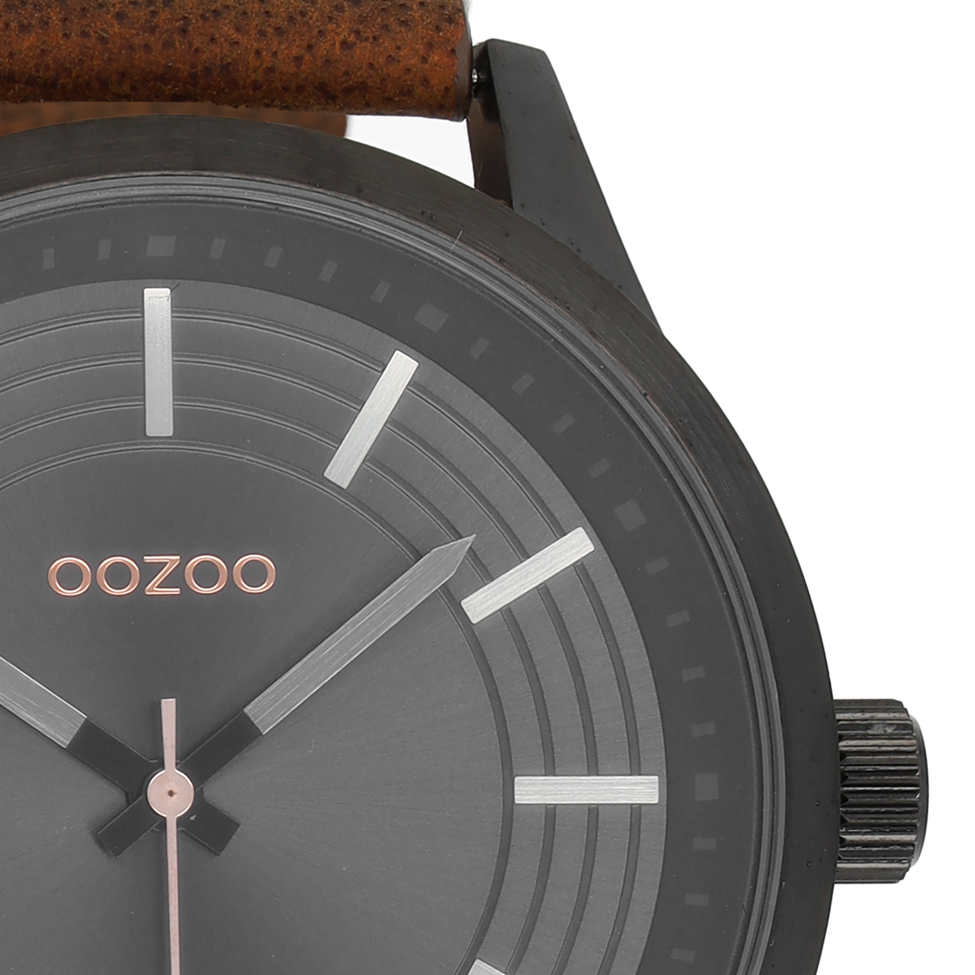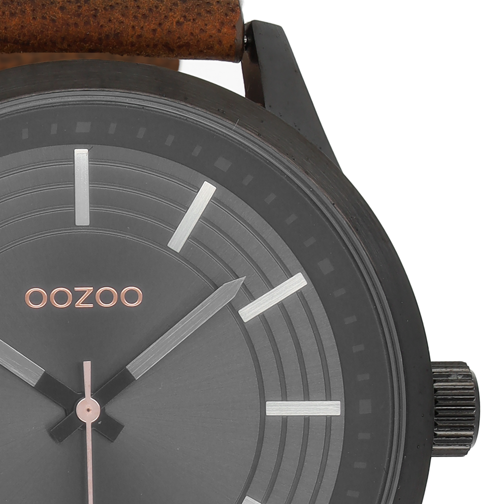 OOZOO Montre en noir avec bracelet en cuir en marron foncé - C9077