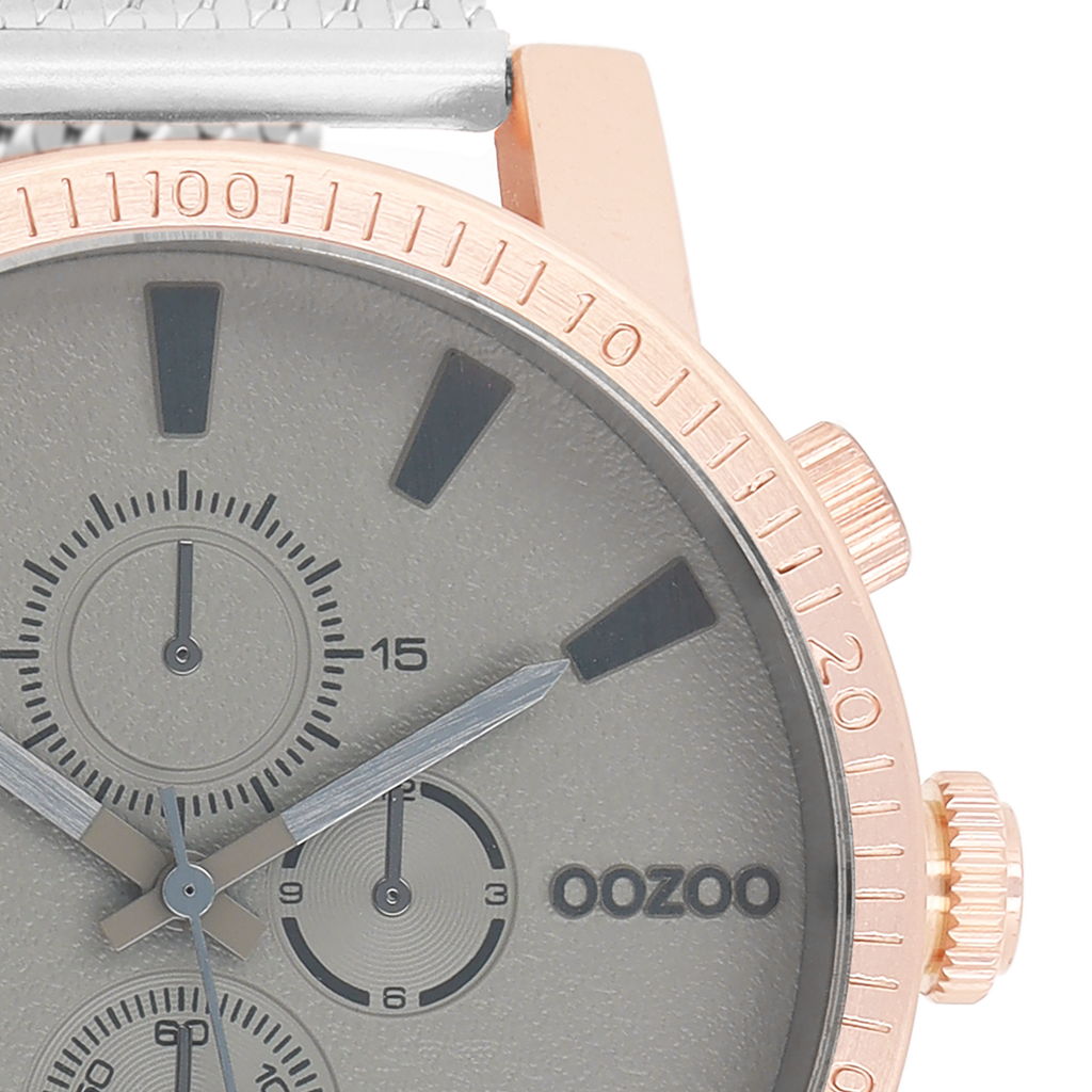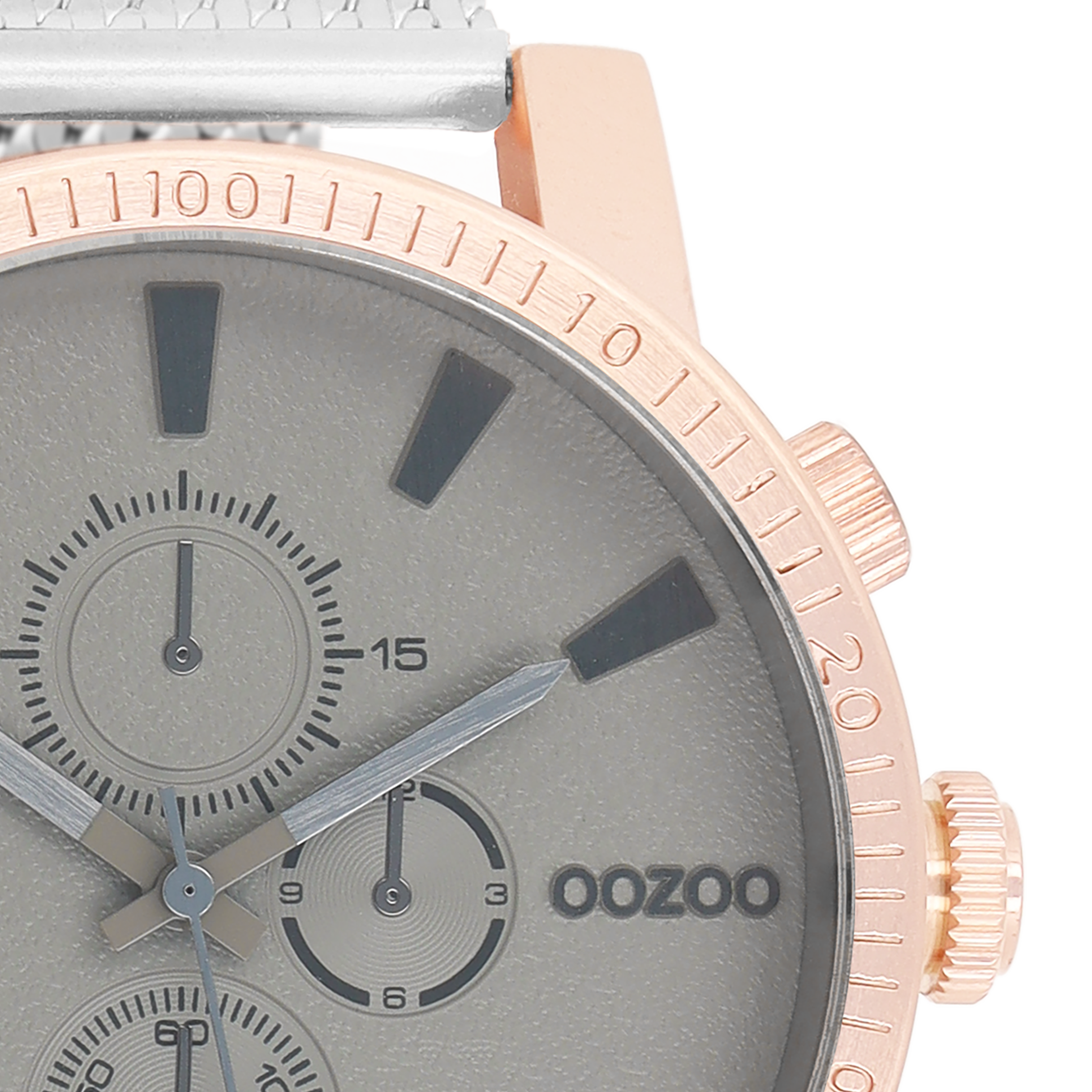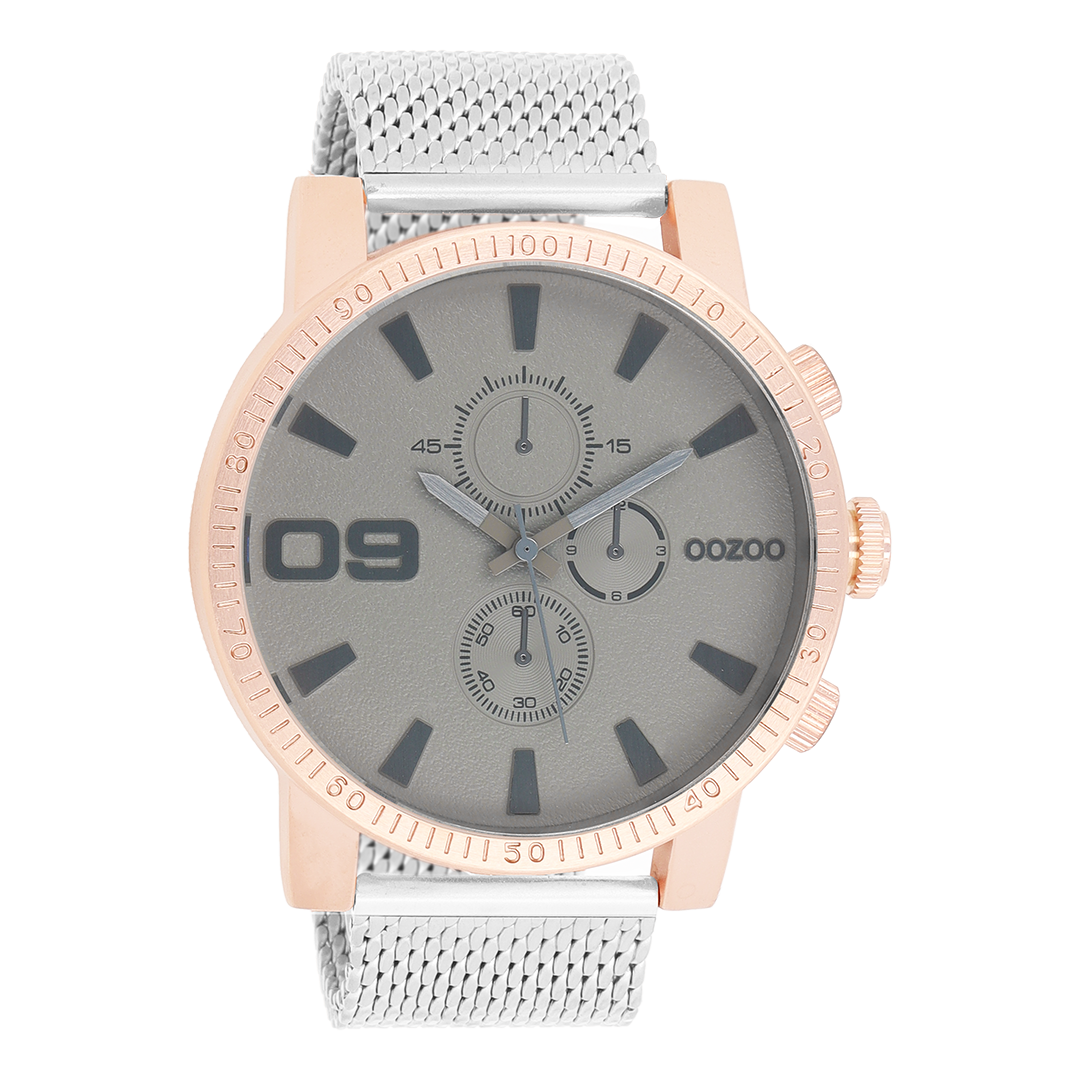 OOZOO Montre en couleur or rose avec bracelet en mesh en couleur argent - C9437