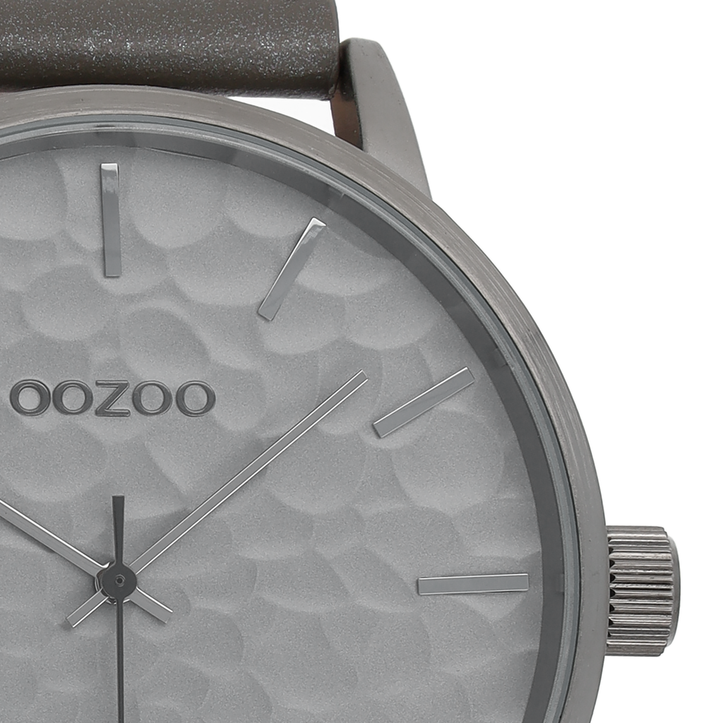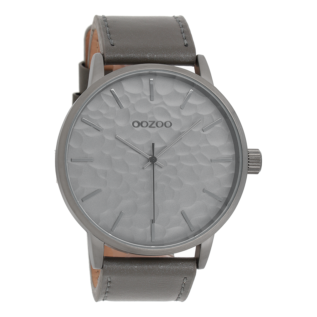 OOZOO Montre en couleur argent avec bracelet en cuir en gris éléphant - C9440