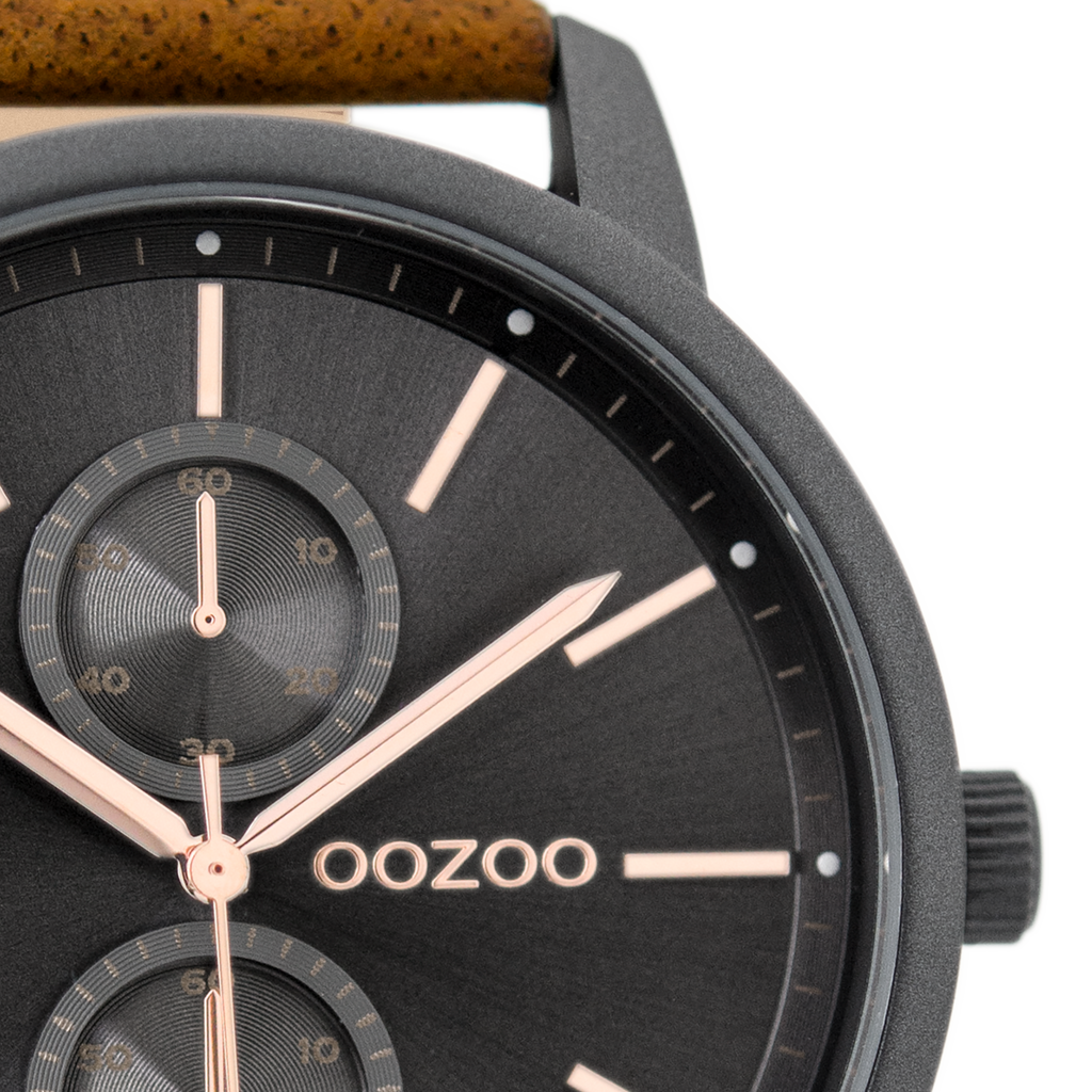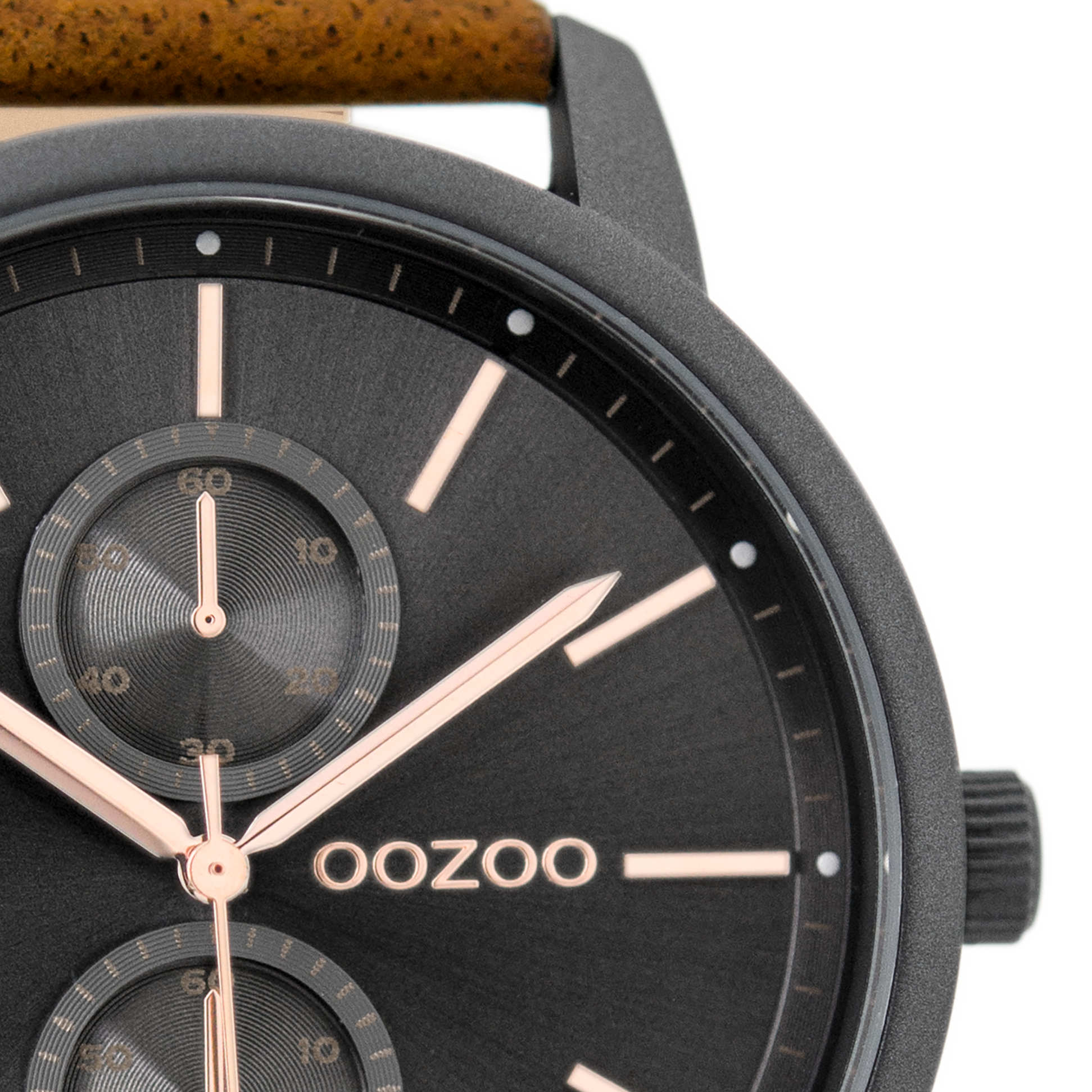 OOZOO Montre en noir avec bracelet en cuir en marron - C9452