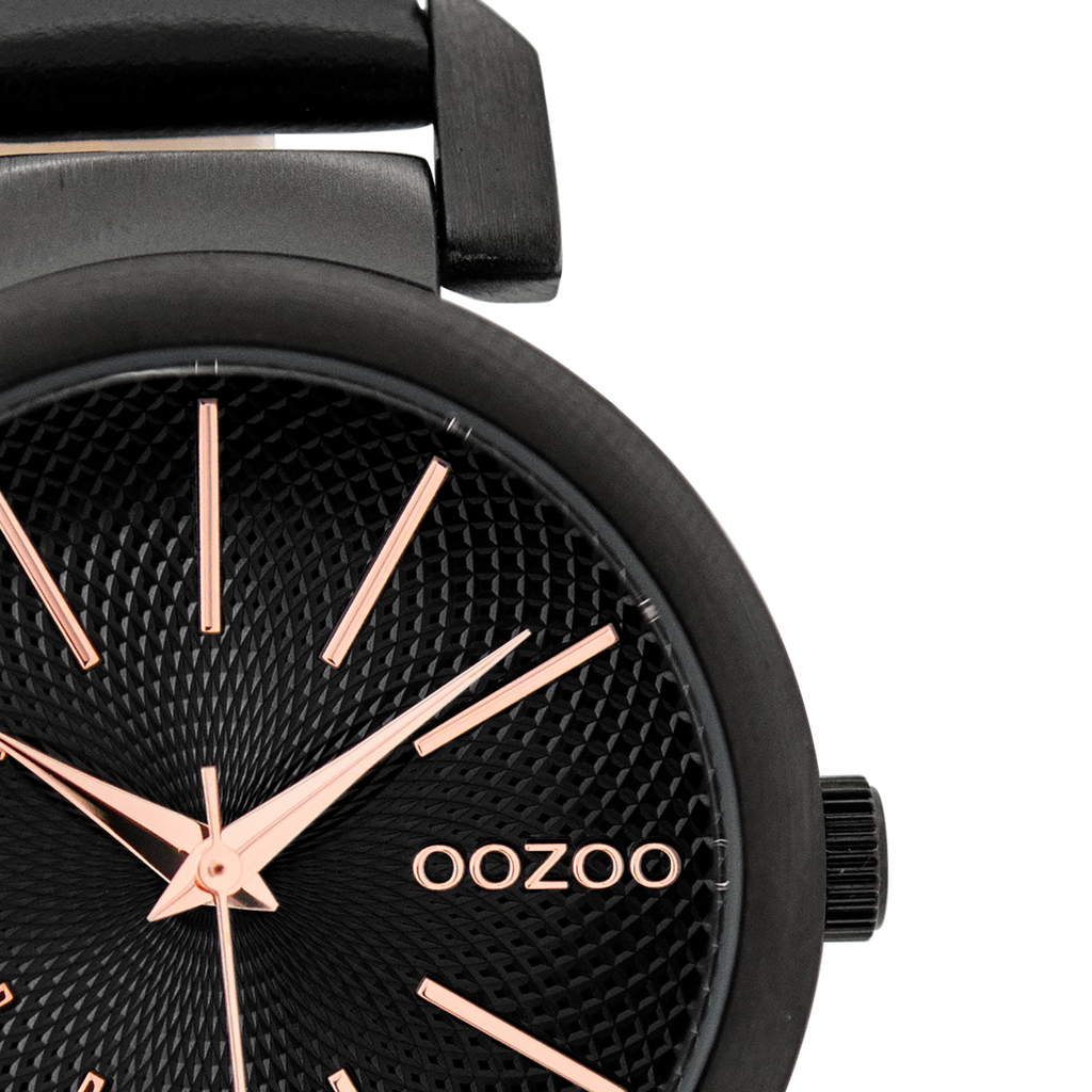 OOZOO Montre en noir avec bracelet en cuir en noir - C9489