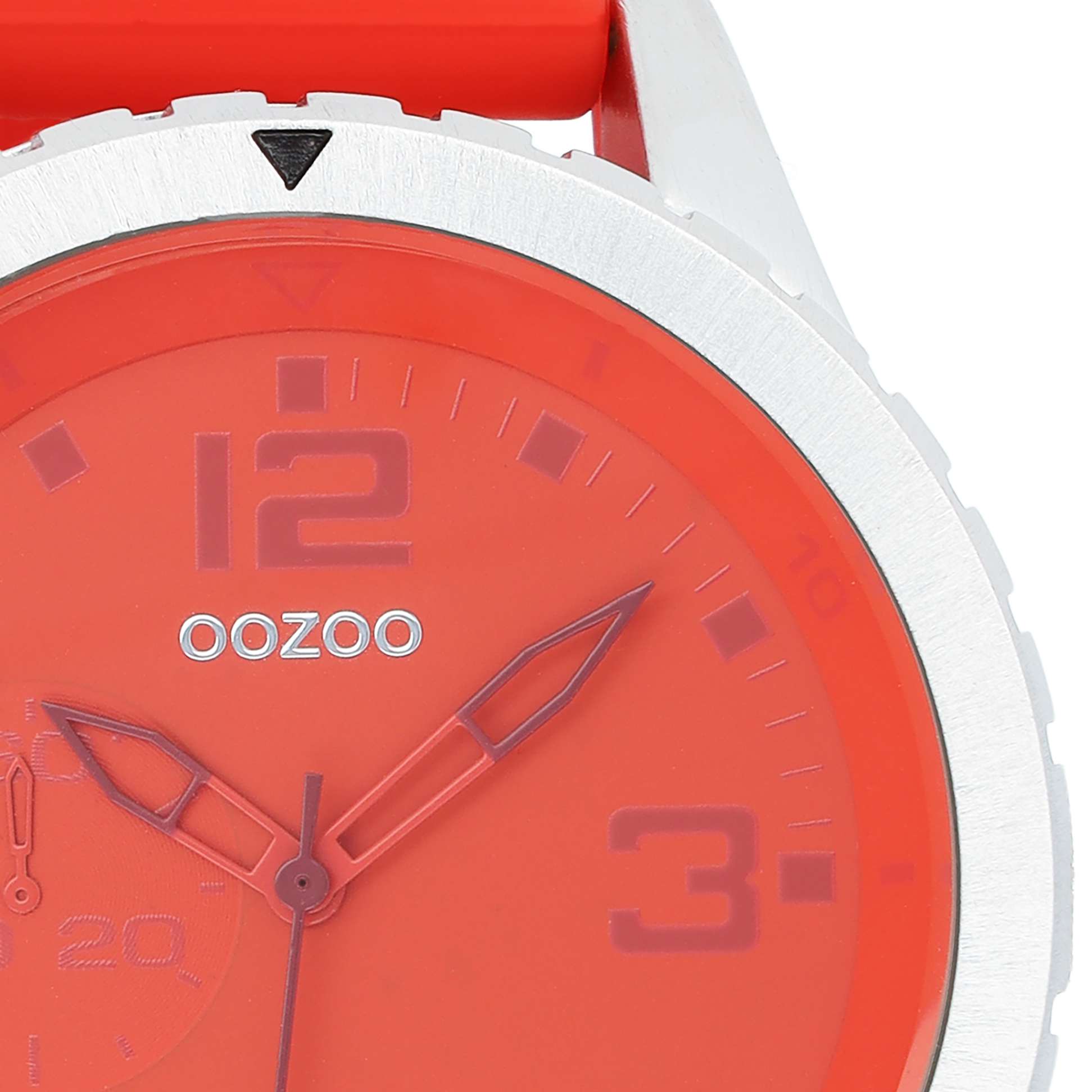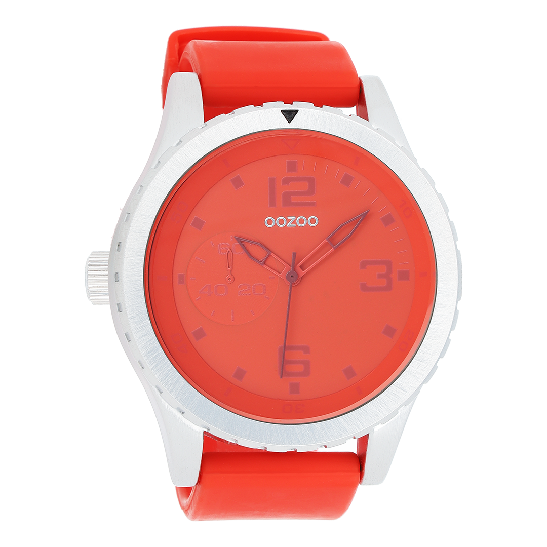 Silver coloured OOZOO watch with red rubber strap - C3670