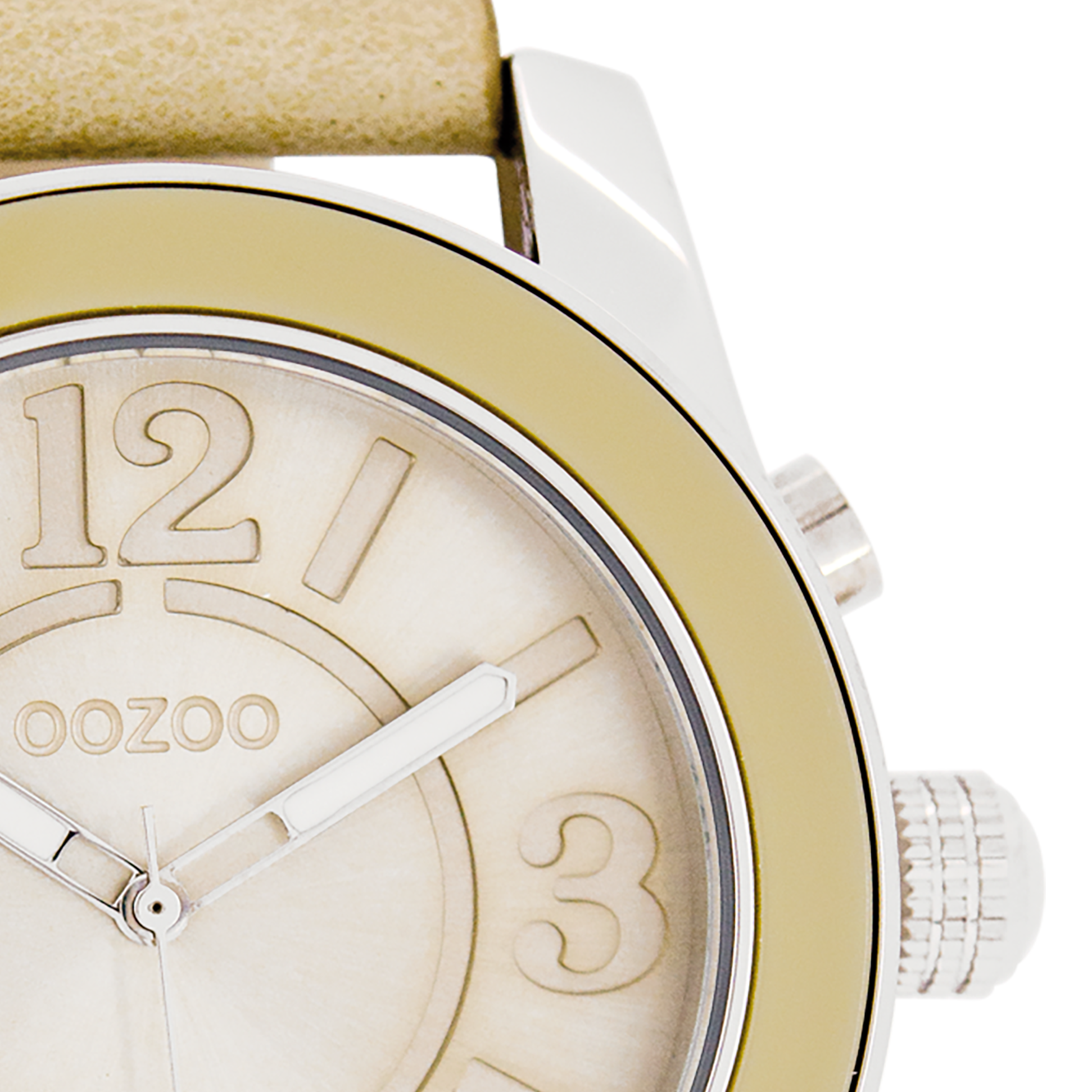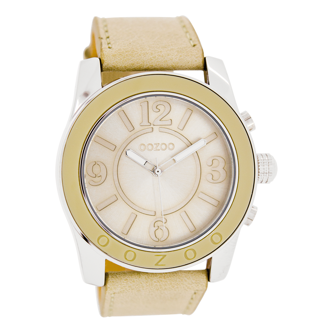 Silver coloured OOZOO watch with sand leather strap - C6265