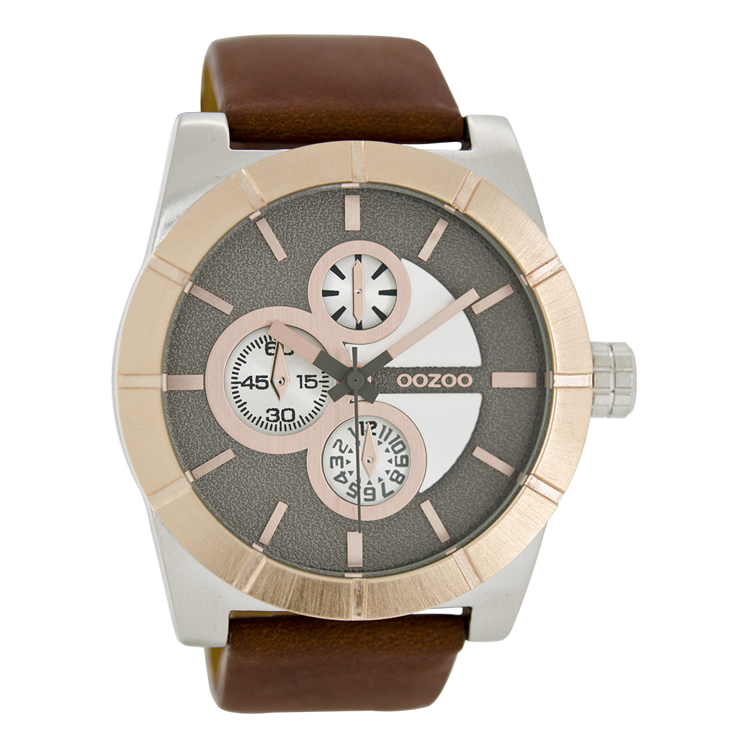Stand out with this beautiful round gents design from the trendy OOZOO Timepieces collection. The C6432 has a brown leather strap and 47 mm silver coloured metal watch case. You are making quite the fashion statement with this grey chrono dial, rose gold coloured stripes digits and matching hands. This essential watch for your wardrobe has a mineral glass, stainless steel backplate and is nickel safe. This watch has a 2 Japanese movement and is covered by a 2 year warranty (see section 3 of our Refund, shipping & warranty policy).