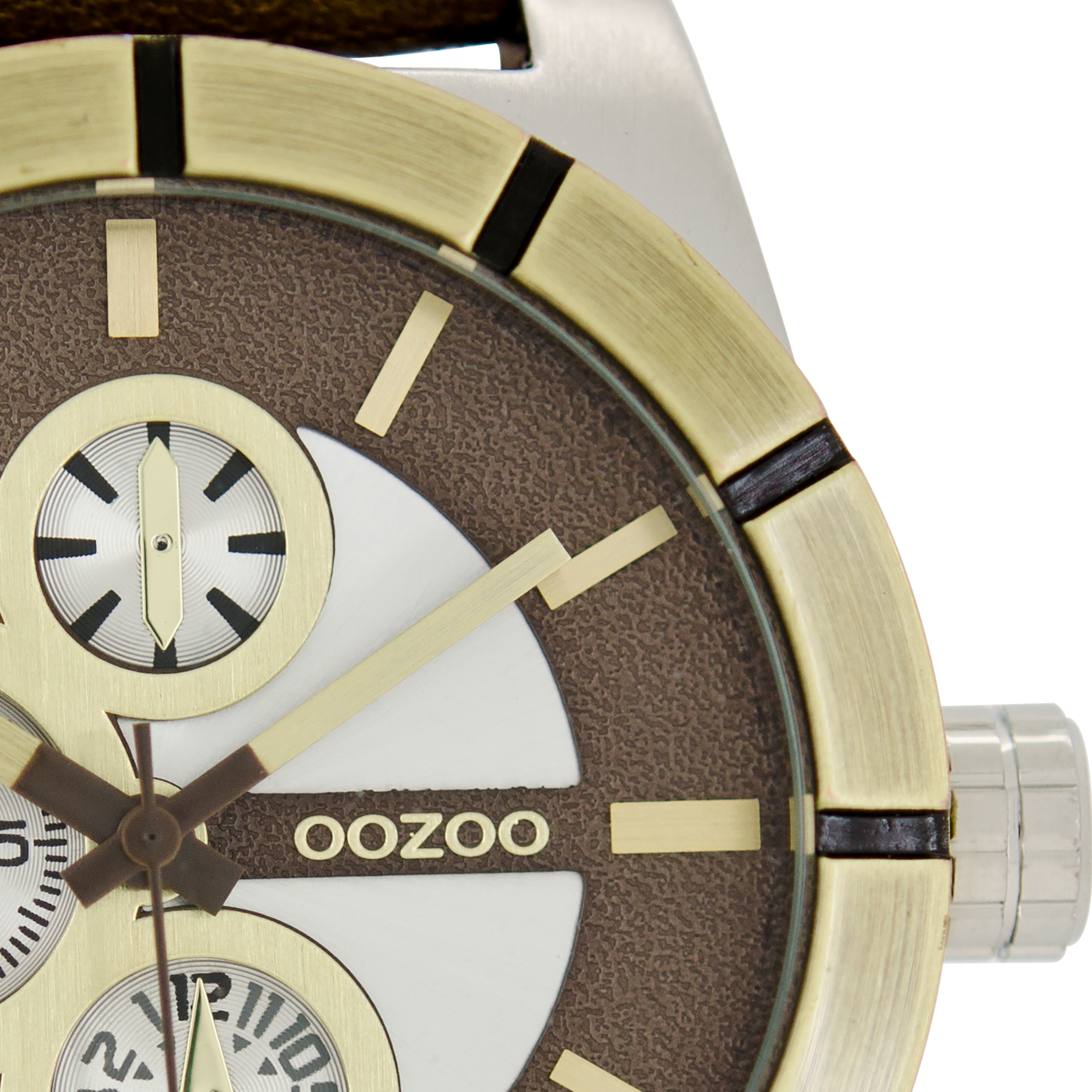 Silver coloured OOZOO watch with dark brown leather strap - C6433