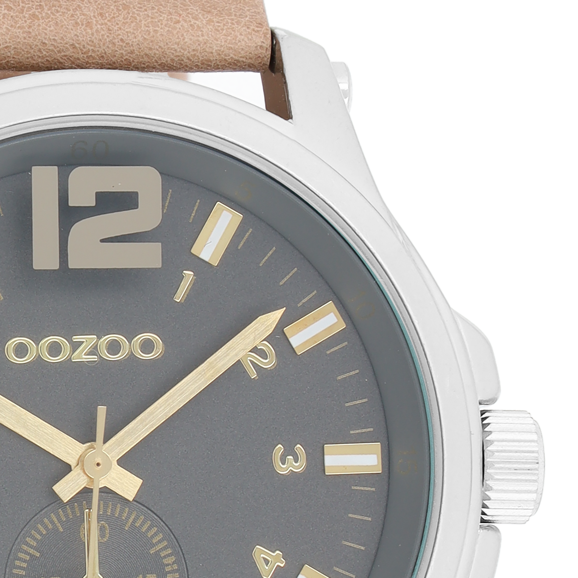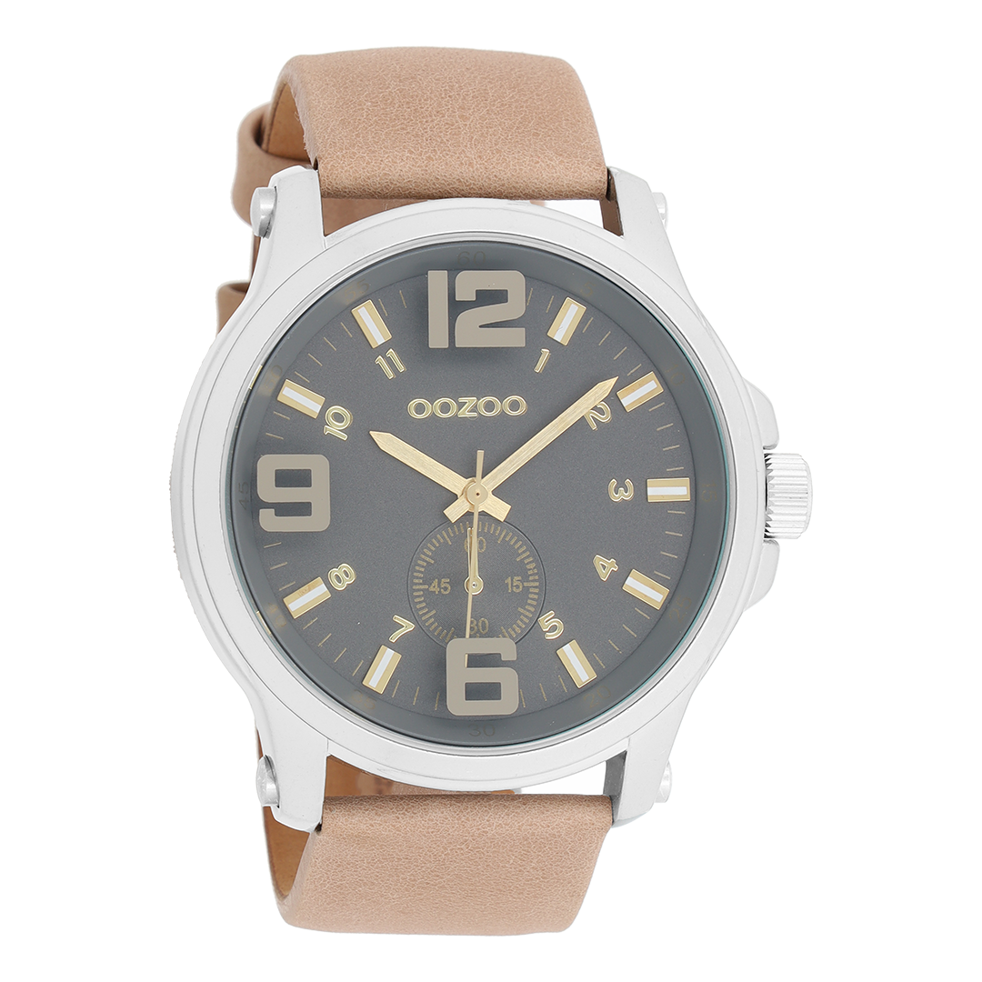 Silver coloured OOZOO watch with sand leather strap - C6455