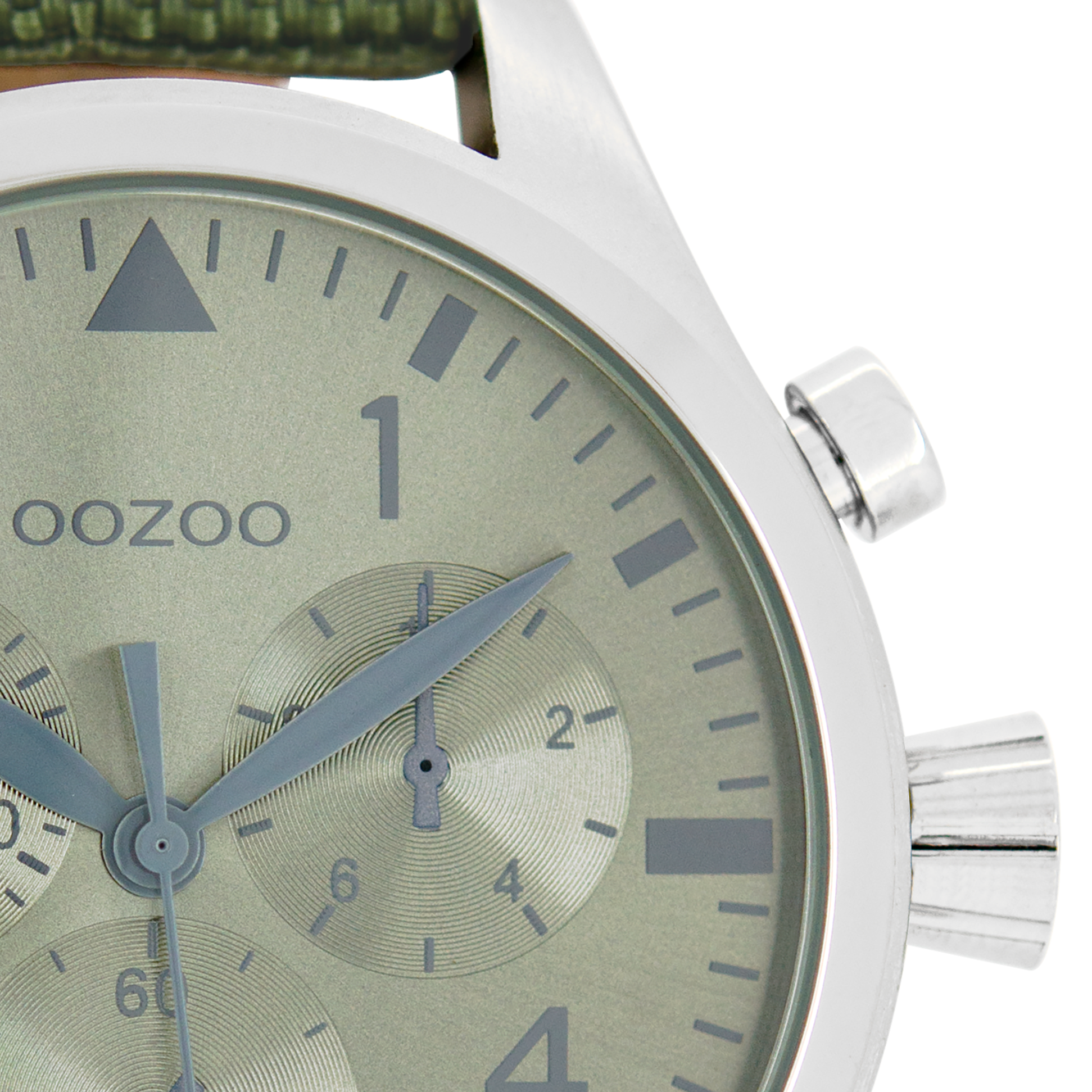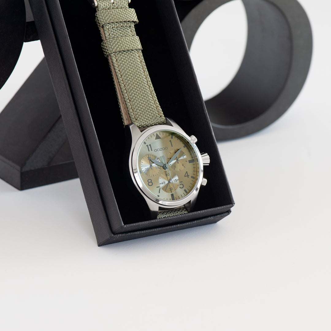 Silver coloured OOZOO watch with green NATO watch strap - C6798