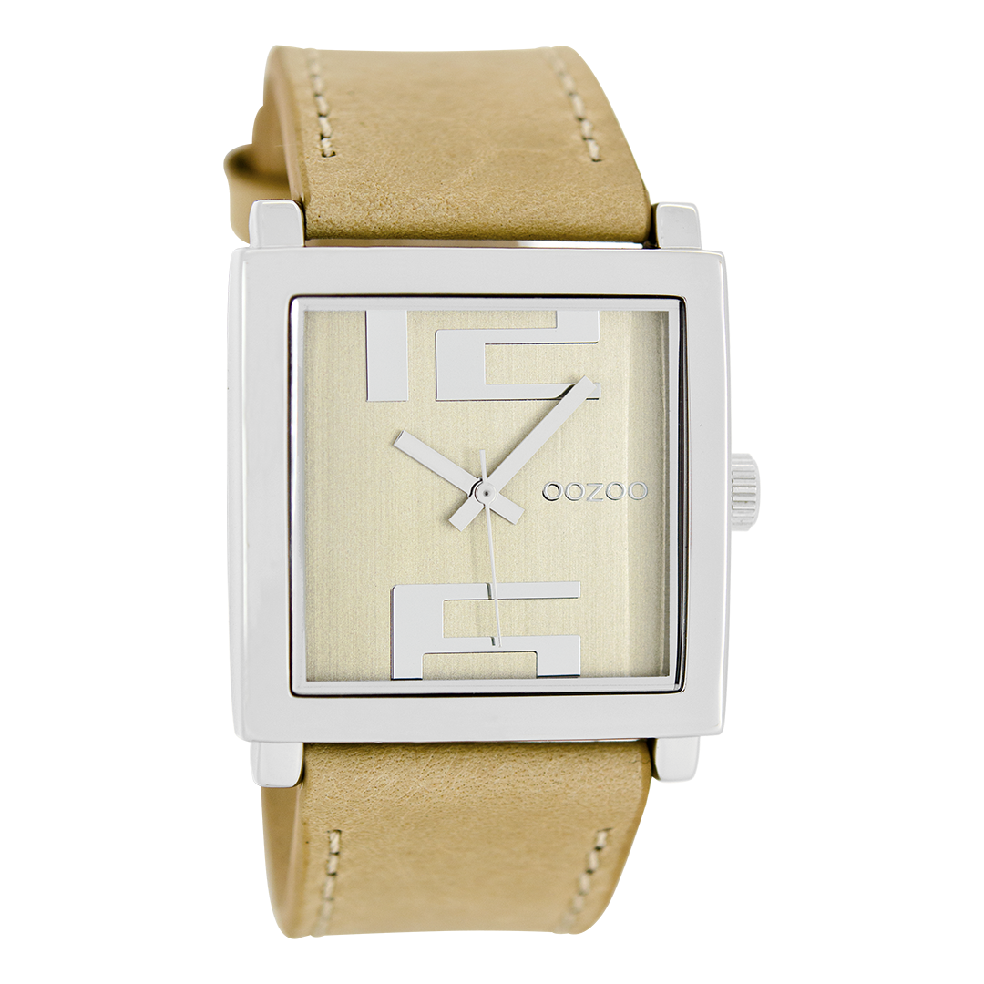 Silver coloured OOZOO watch with sand leather strap - C6815