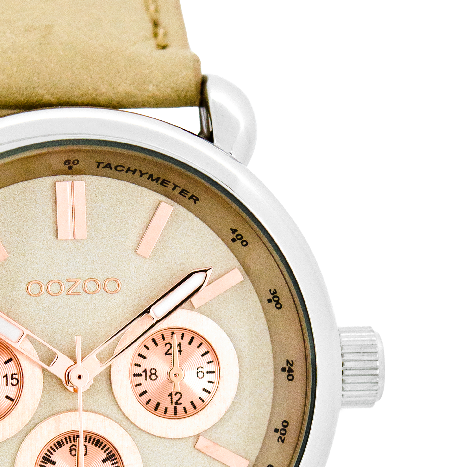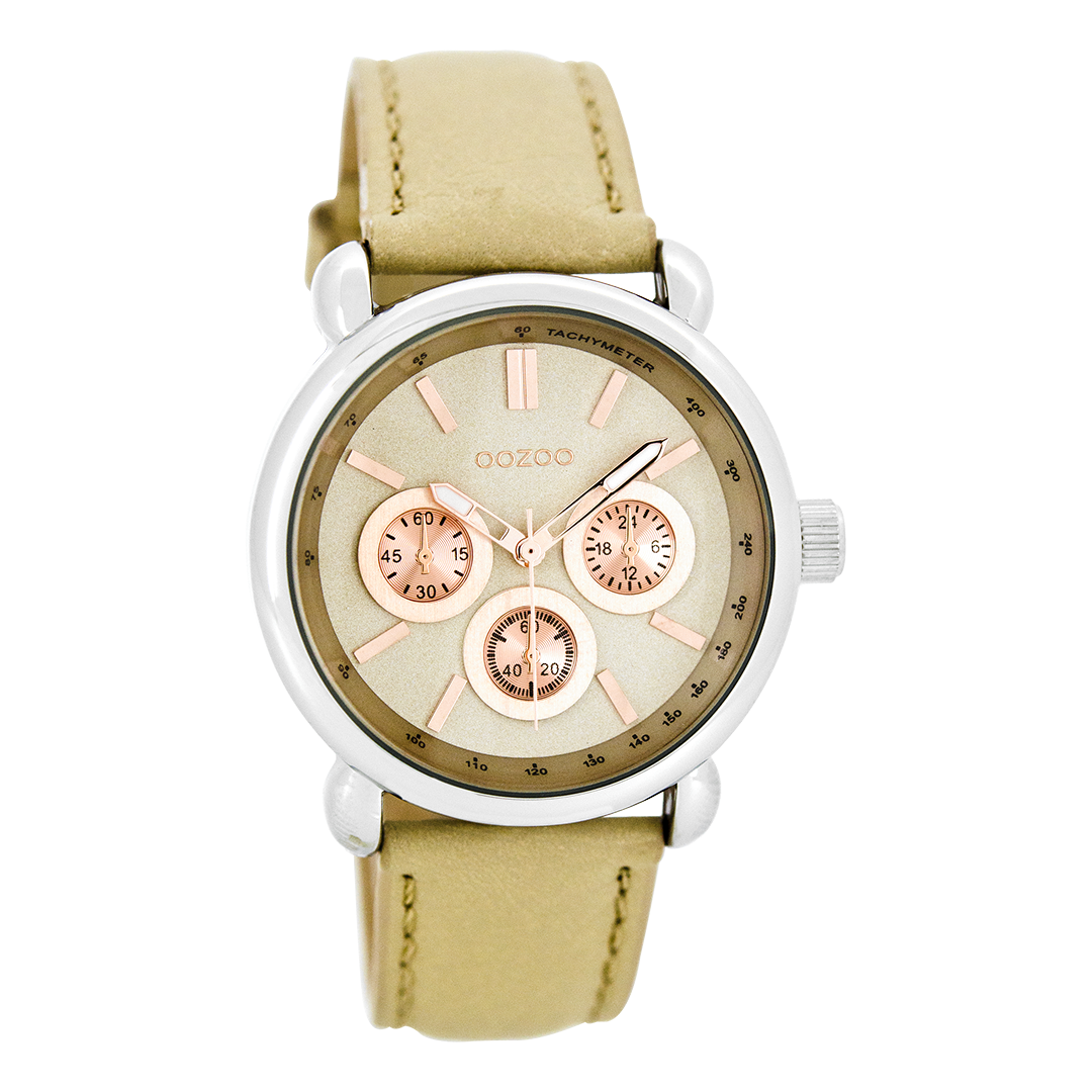 Silver coloured OOZOO watch with sand leather strap - C7135
