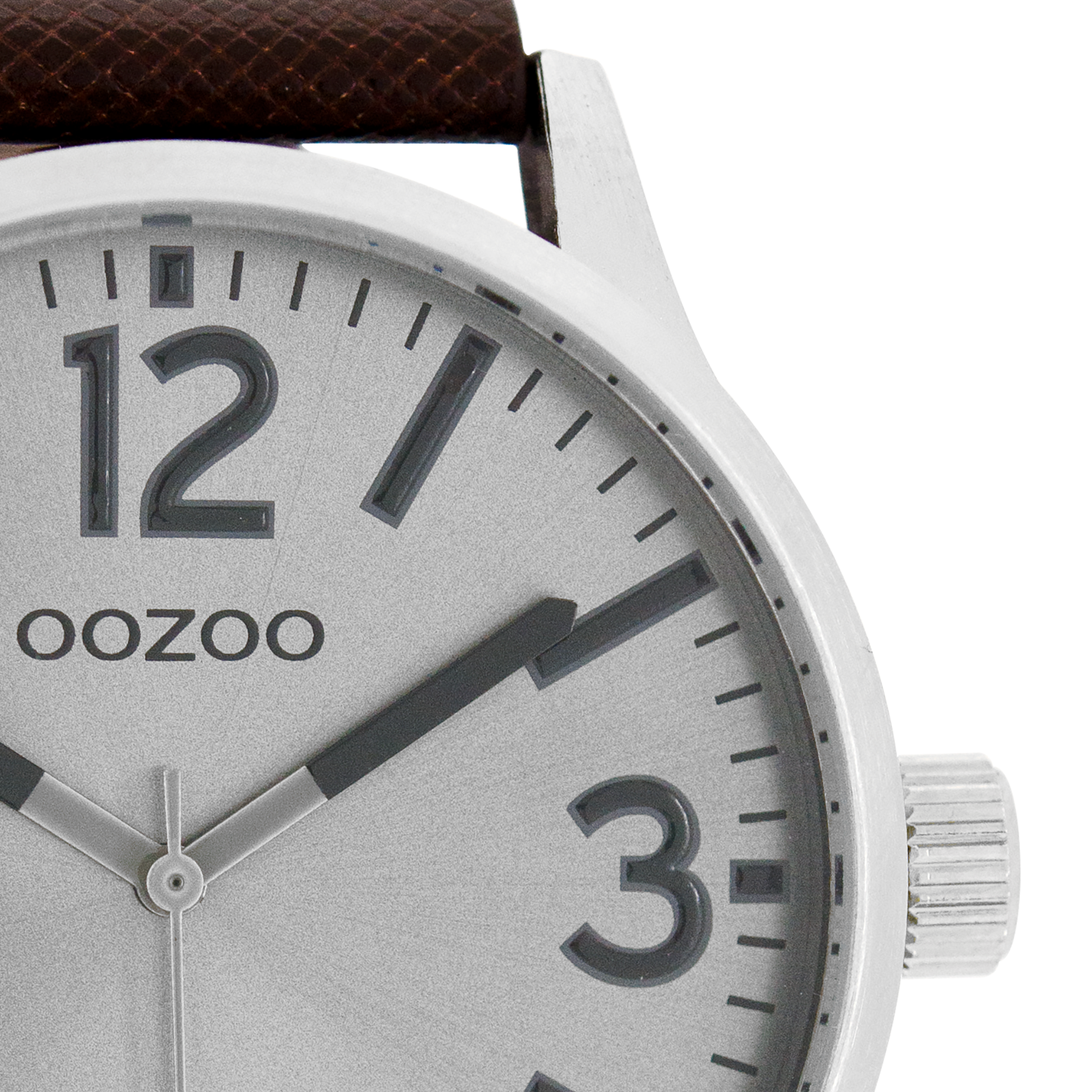 Silver coloured OOZOO watch with dark brown leather strap - C7407