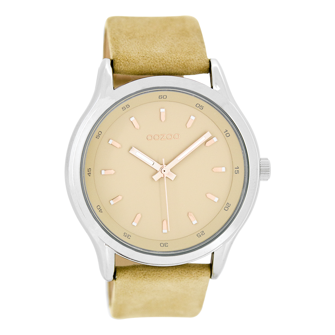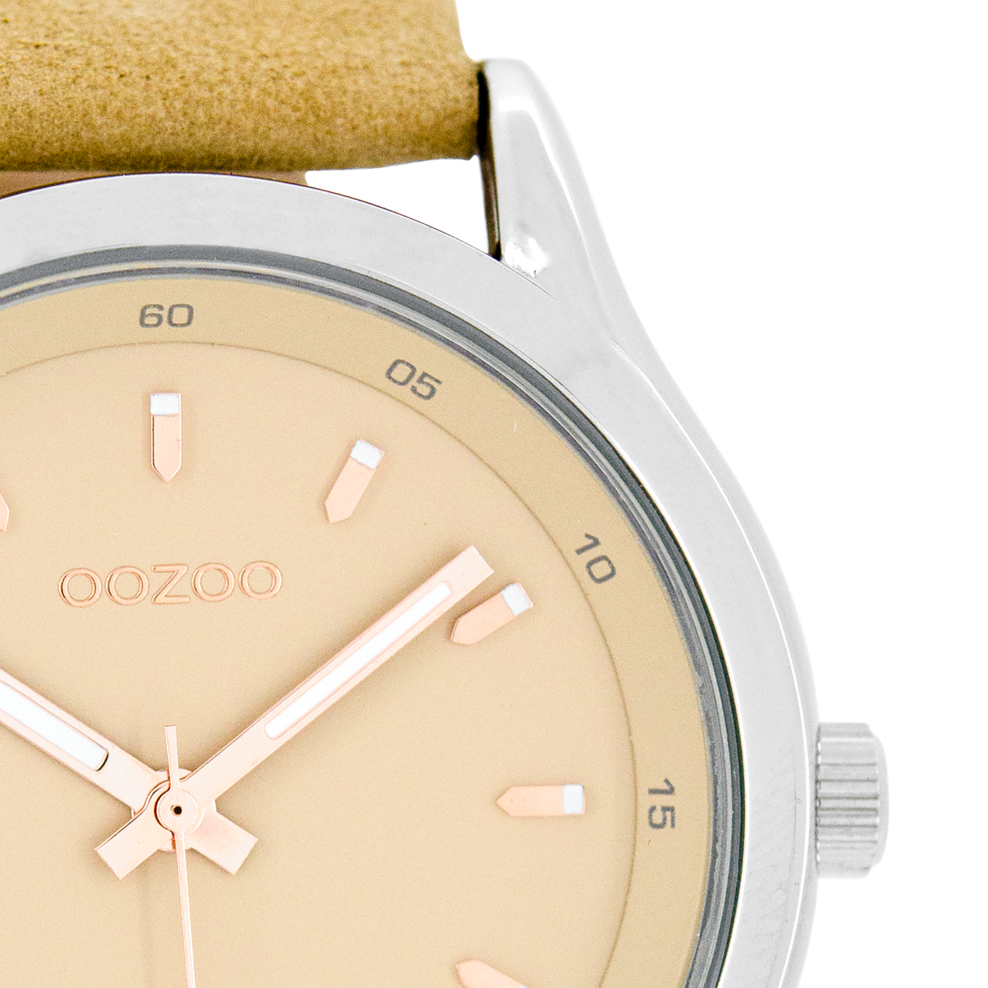 Silver coloured OOZOO watch with sand leather strap - C7435