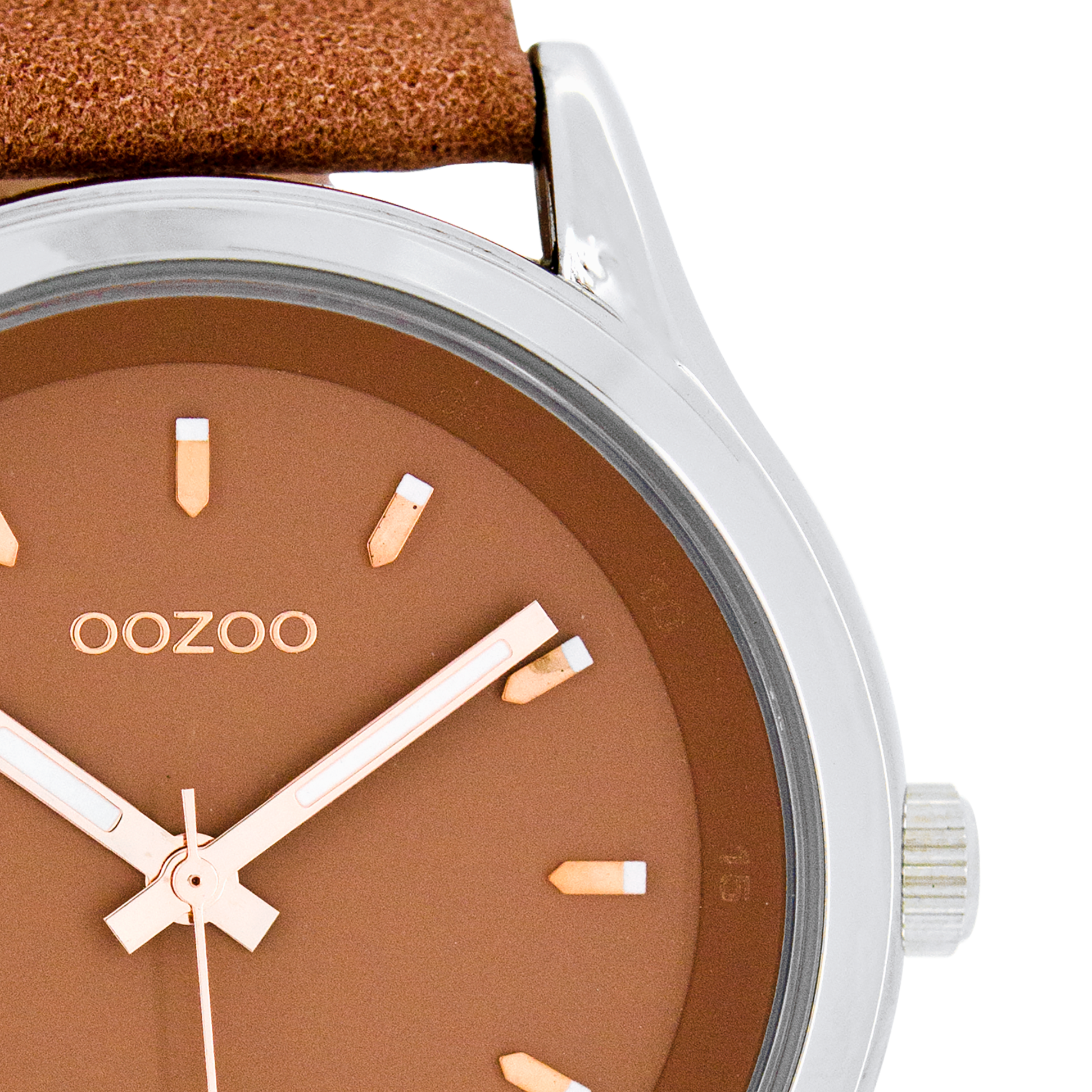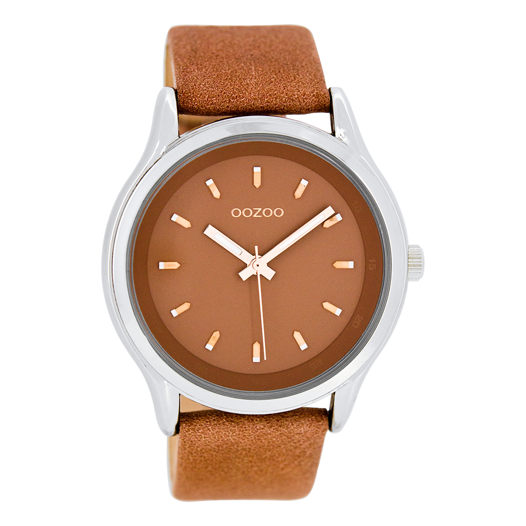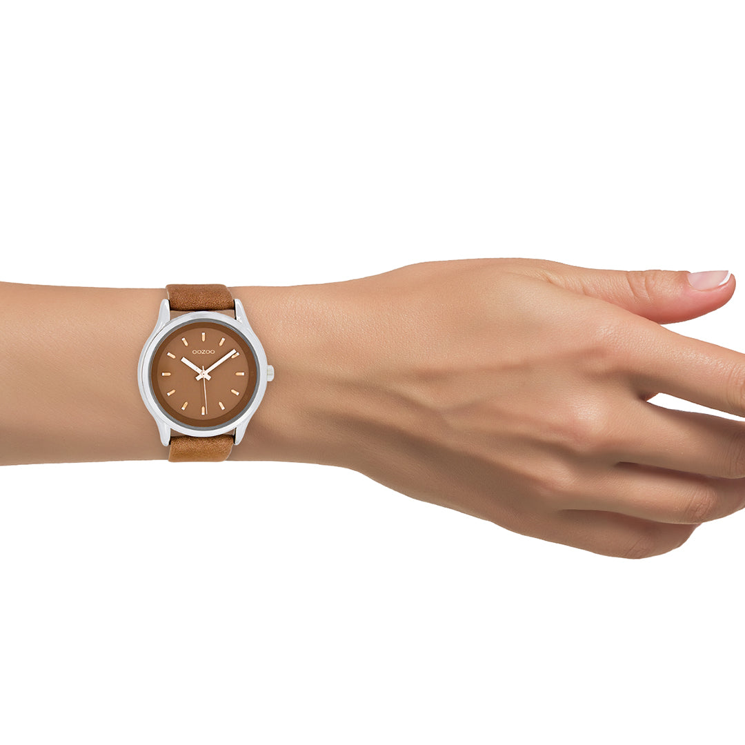 Silver coloured OOZOO watch with dusty orange leather strap - C7437