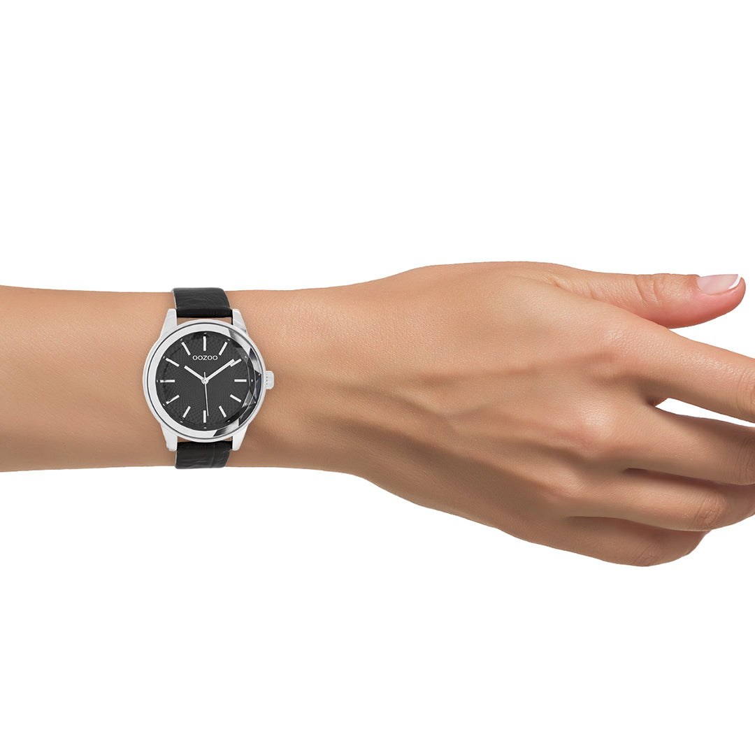 Stand out with this beautiful round ladies design from the trendy OOZOO Timepieces collection. The C7534 has a black leather strap and 40 mm silver coloured metal watch case. You are making quite the fashion statement with this dark blue dial, silver coloured stripes digits and matching hands. This essential watch for your wardrobe has a mineral glass, stainless steel backplate and is nickel safe. This watch has a 2 Japanese movement and is covered by a 2 year warranty (see section 3 of our Refund, shipping & warranty policy).