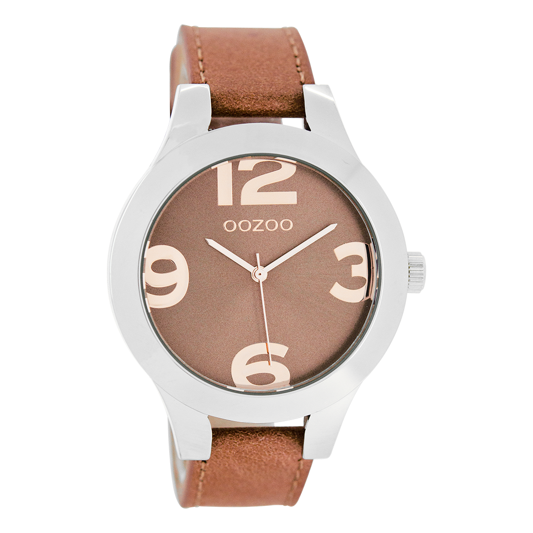 Silver coloured OOZOO watch with dusty orange leather strap - C7591